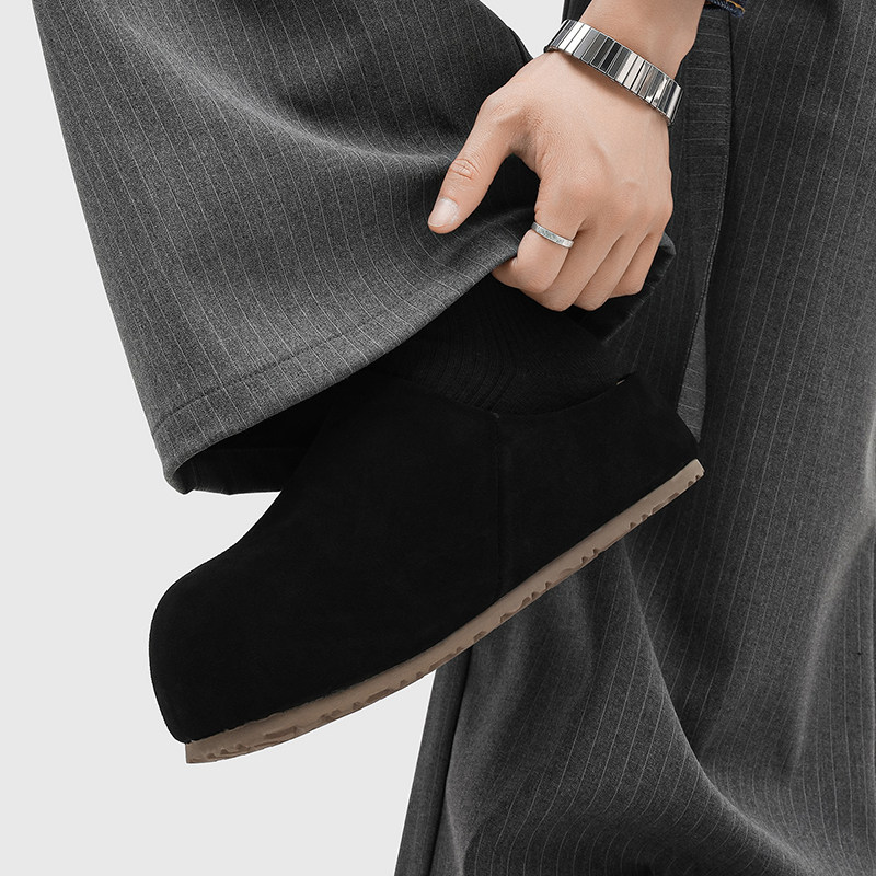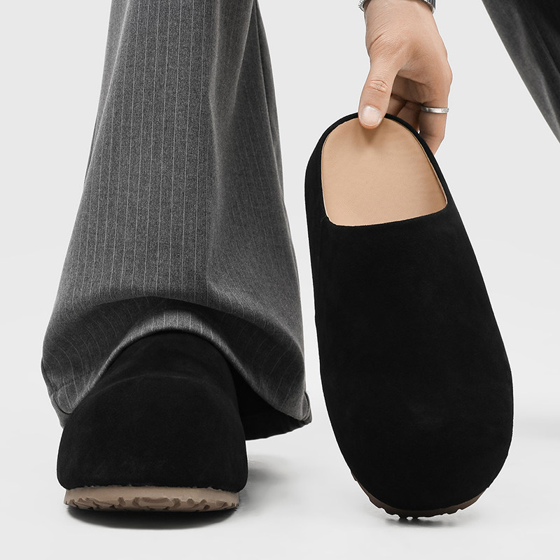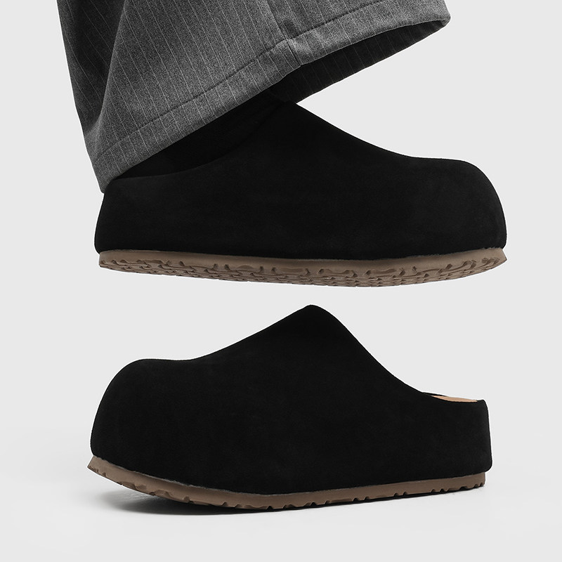 增高5cm勃肯鞋男厚底外穿休闲拖鞋一脚蹬黑色包头半拖懒人穆勒鞋