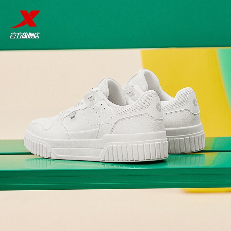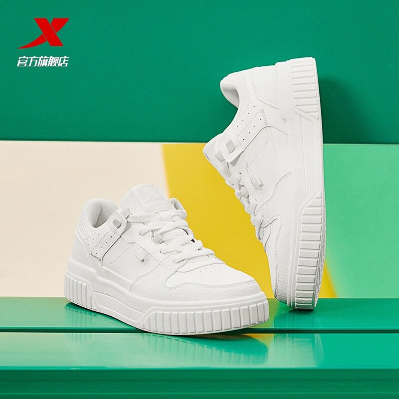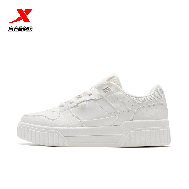 特步女鞋板鞋时尚潮流新款学生厚底百搭休闲鞋轻便运动鞋小白鞋子