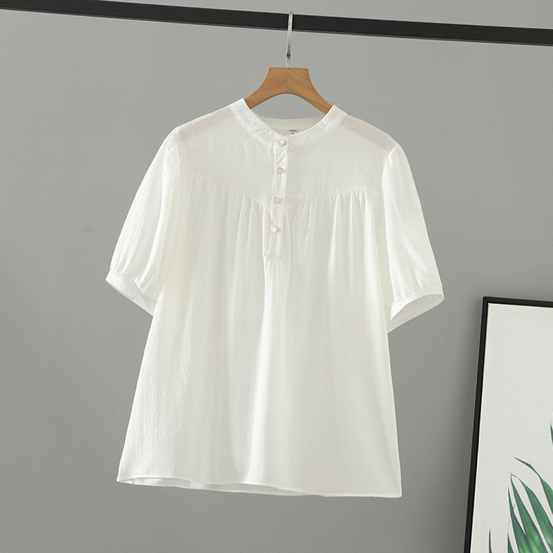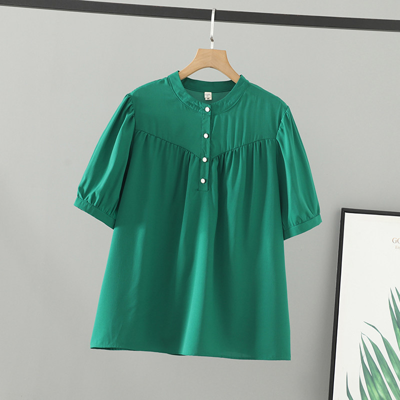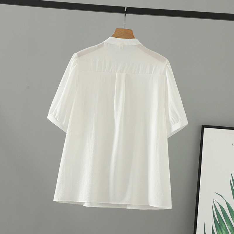 胖mm女装夏装2026新款短袖褶皱圆领宽松衬衫女微胖大码套头衬衣