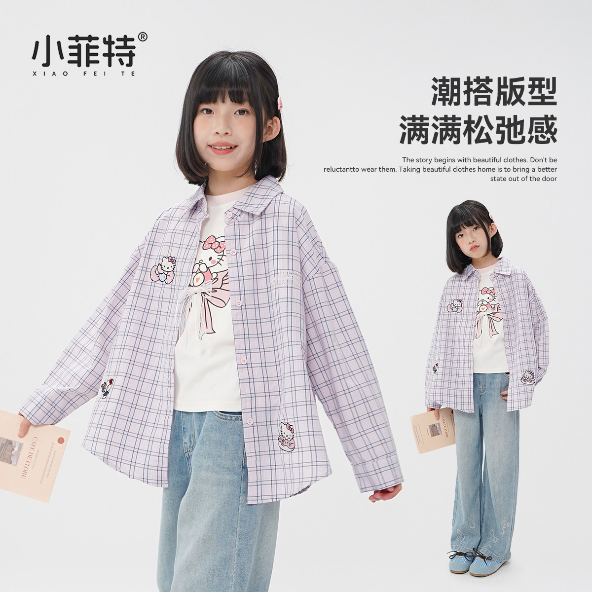 女童衬衫超好看韩系2026新款儿童洋气长袖春装中大童纯棉格子衬衣