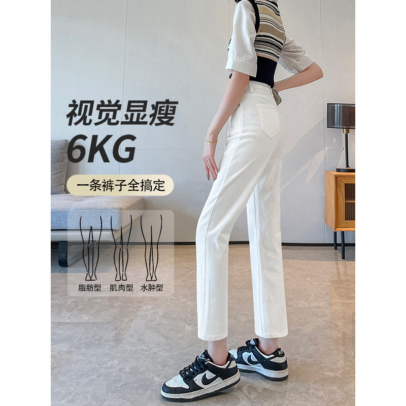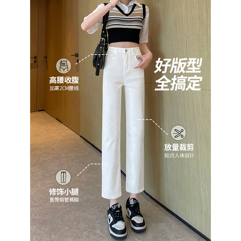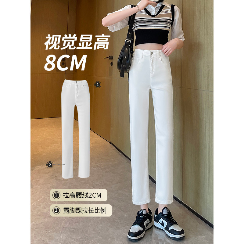 白色烟管裤女2026新款春秋夏薄高腰八分九分小个子窄版直筒牛仔裤