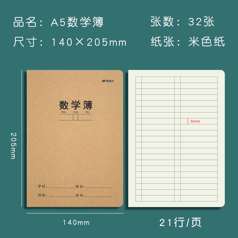 晨光a5数学本加厚牛皮纸作业本子小学生一二三年级统一标准数学簿A5小号数学练习簿课堂笔记本子数学分栏本