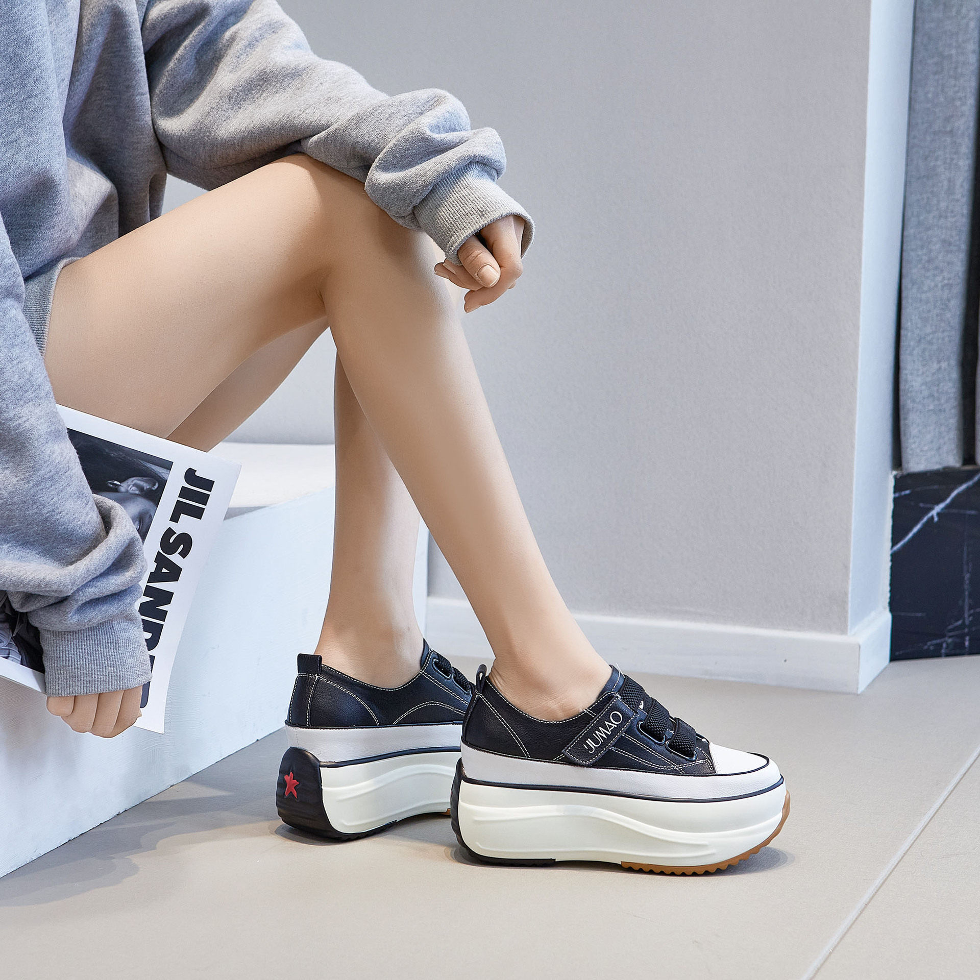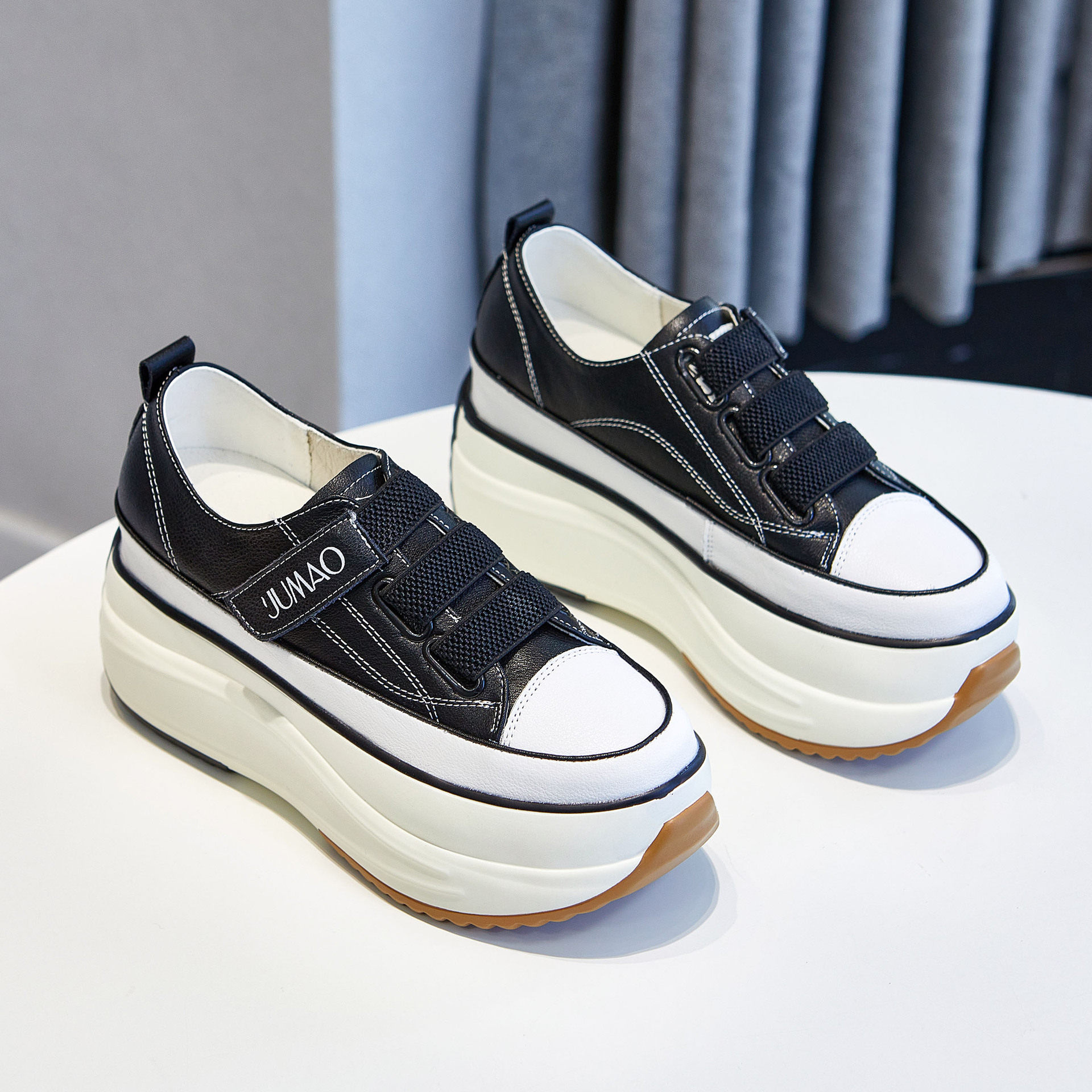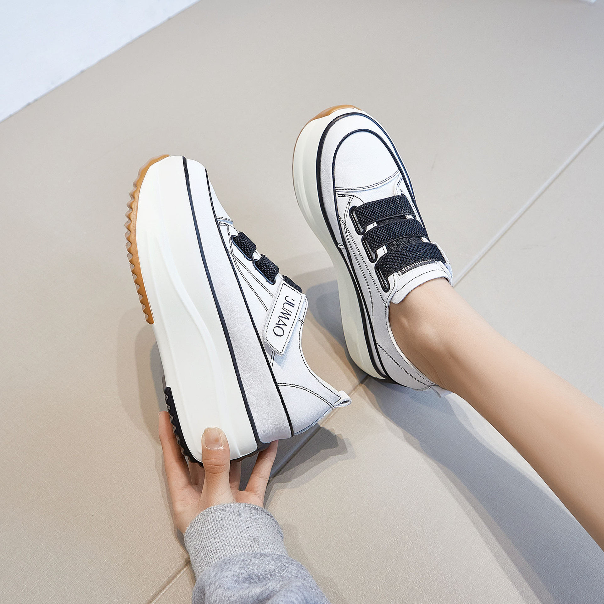 松糕厚底2026新款欧洲站真皮女鞋小个子增高10CM魔术贴增高鞋子