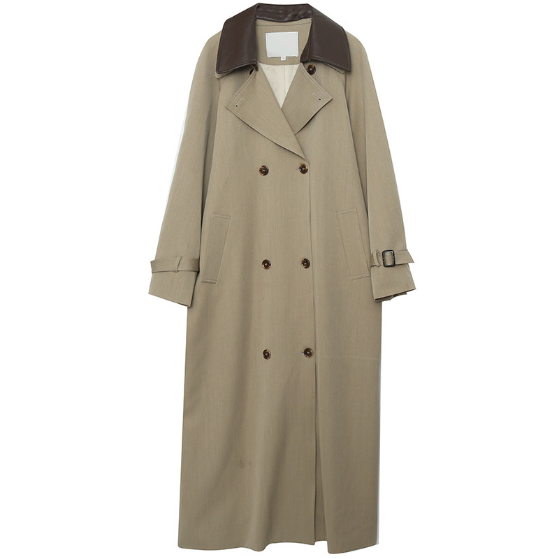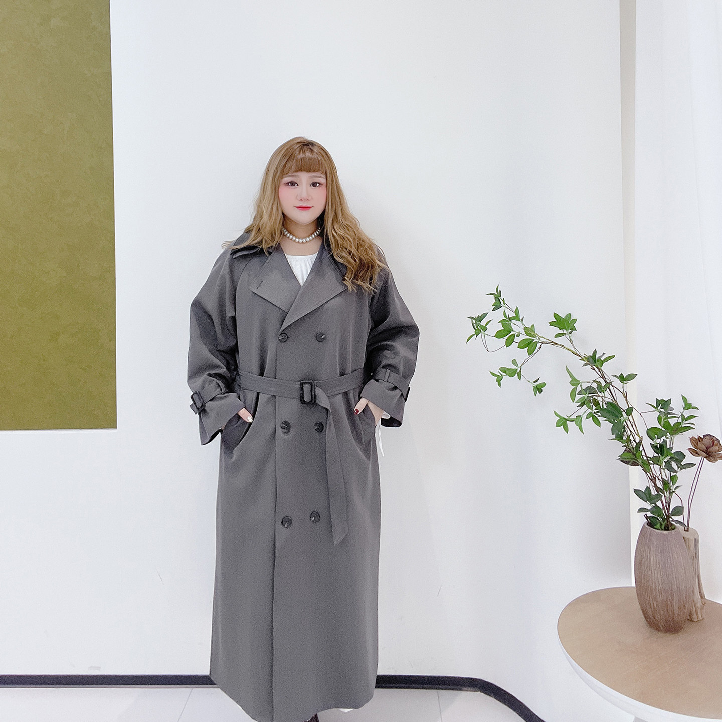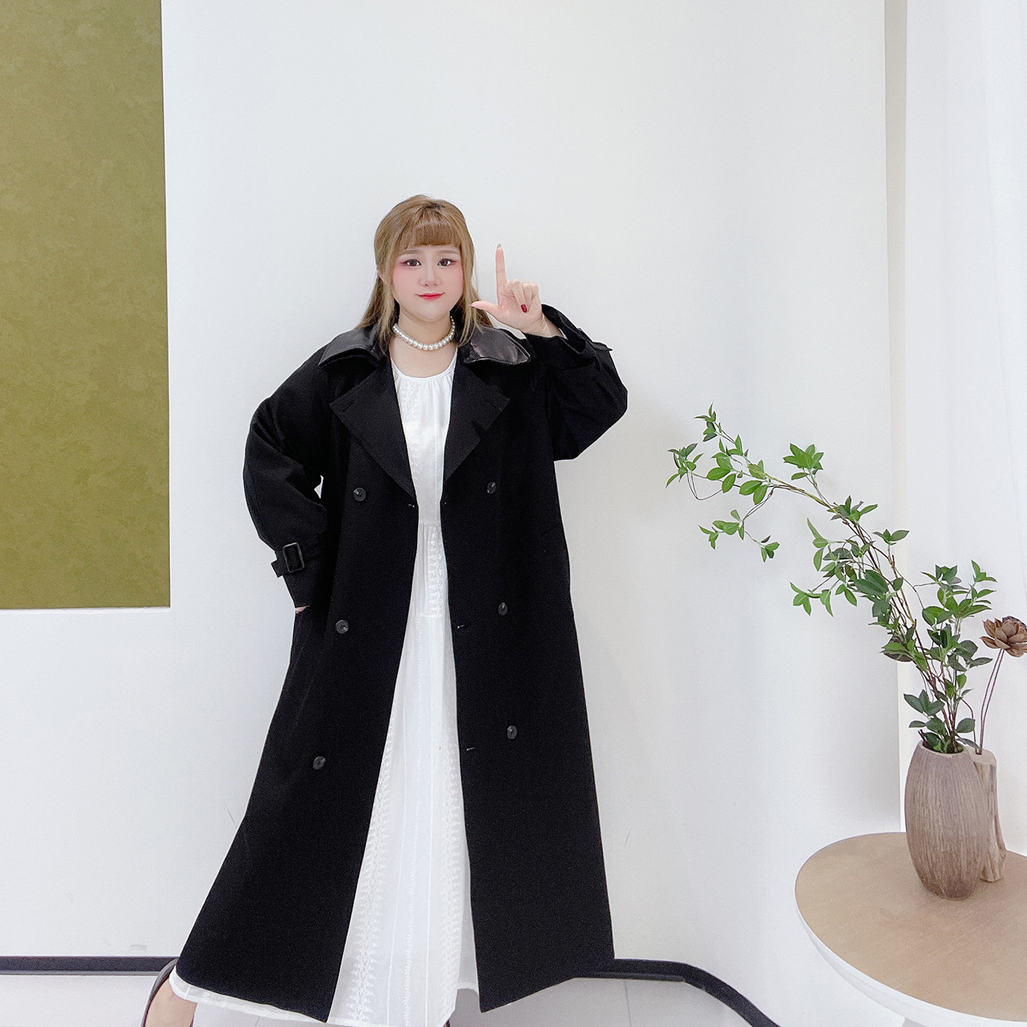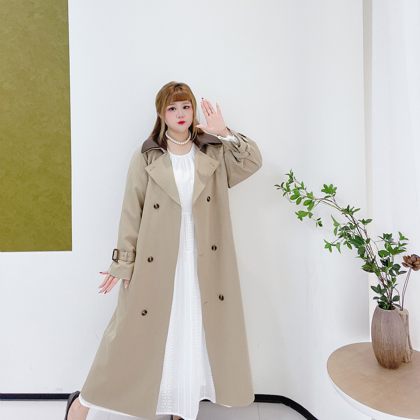 2026春款胖莹莹大码女装高级感英伦风撞色双排扣过膝长款风衣外套