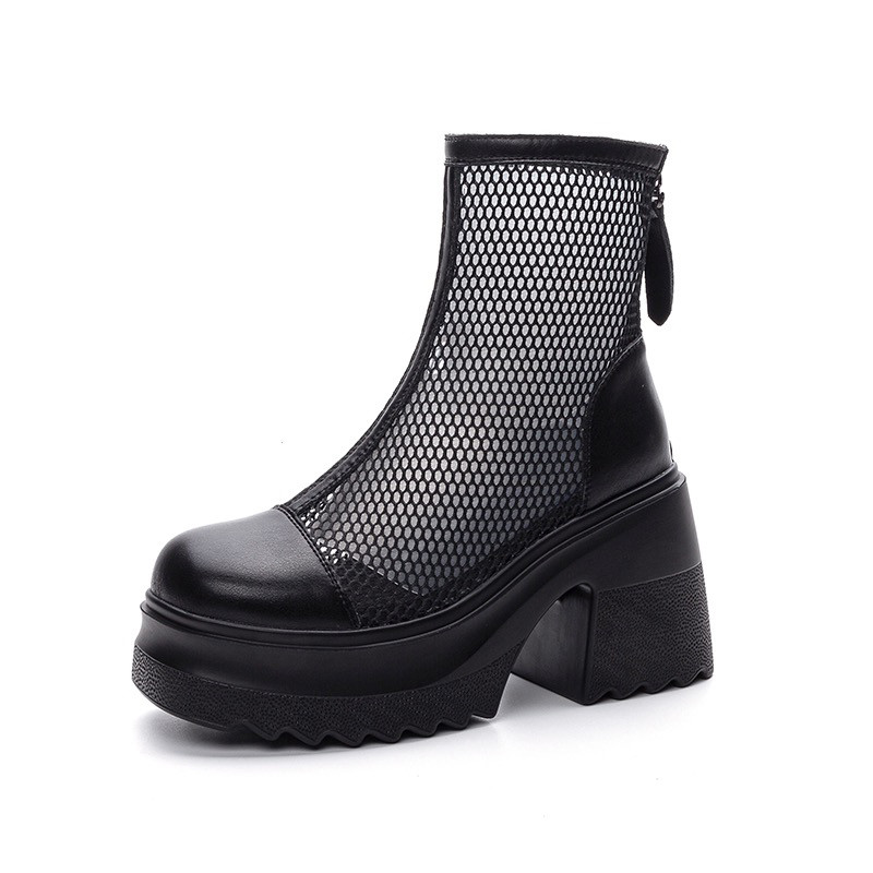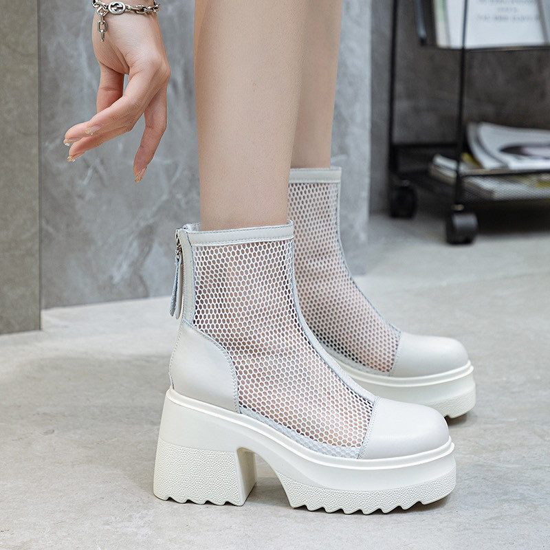 内增高小个子女鞋10厘米网纱透气网靴马丁靴女夏季薄款厚底短靴子