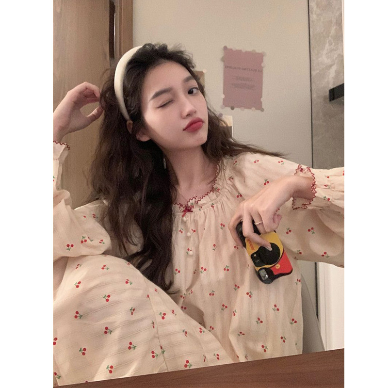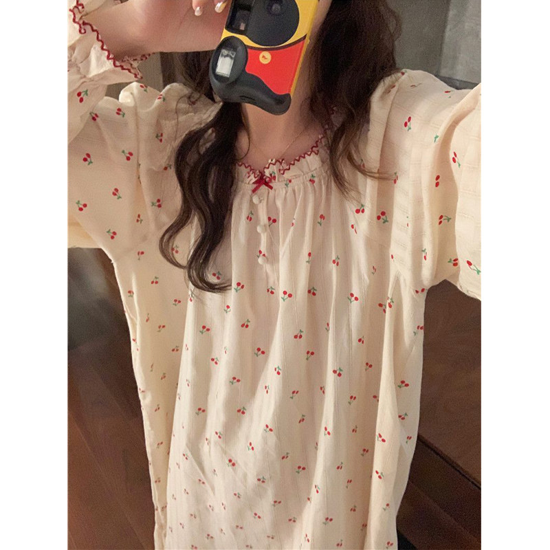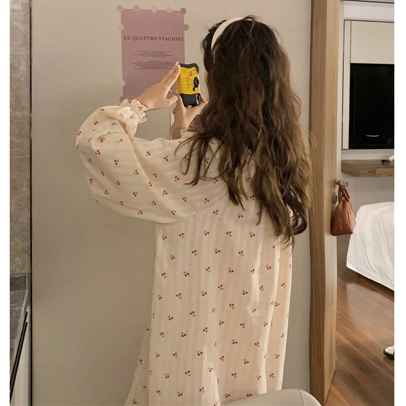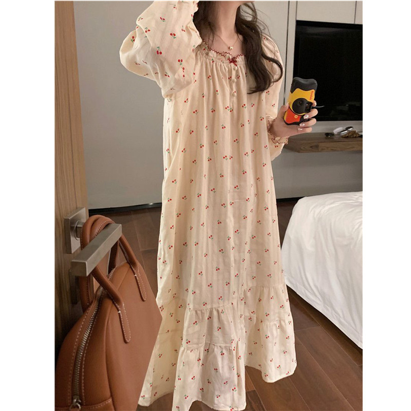带胸垫睡裙女士睡衣春秋季秋款纯棉长袖长款连衣裙子夏款薄款套装