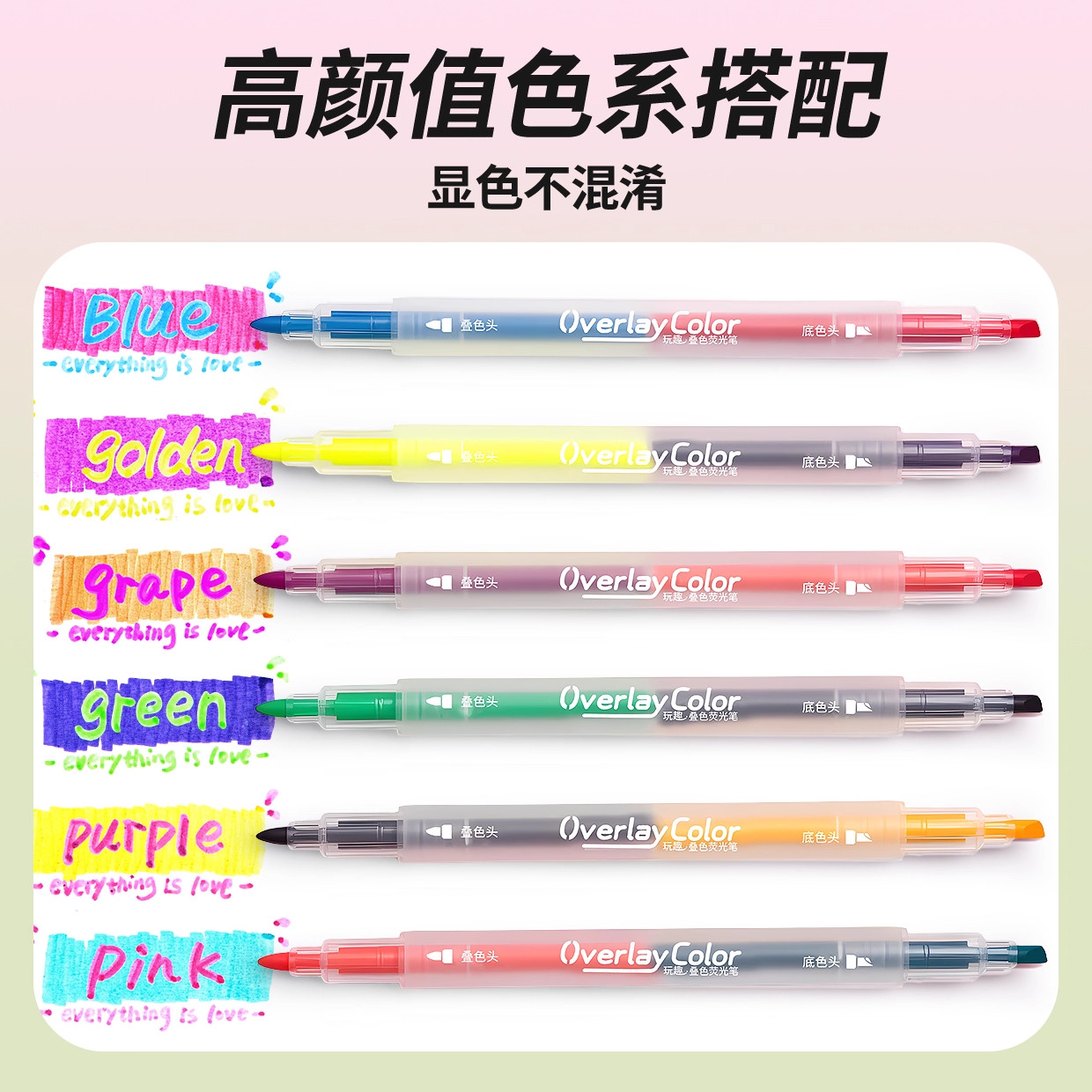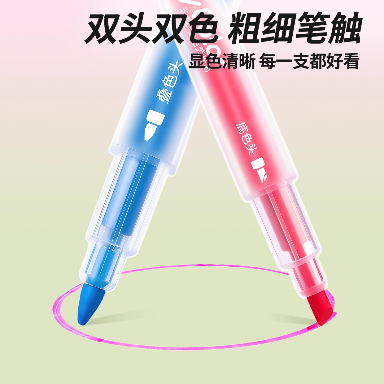 得力双头叠色荧光笔初中生专用标记笔小学生彩色划重点高中做笔记手抄报手账用不晕染高颜值ins风多色记号笔