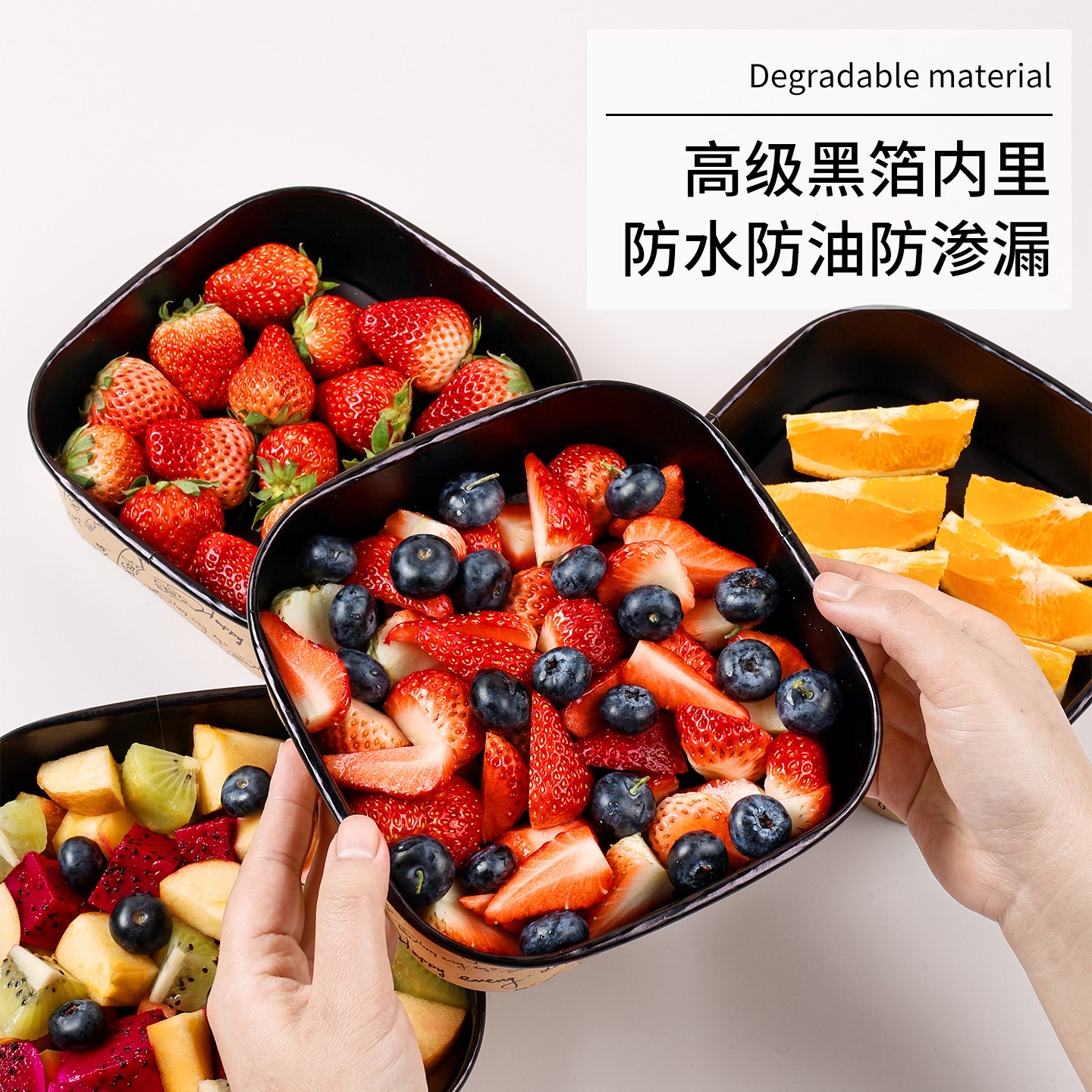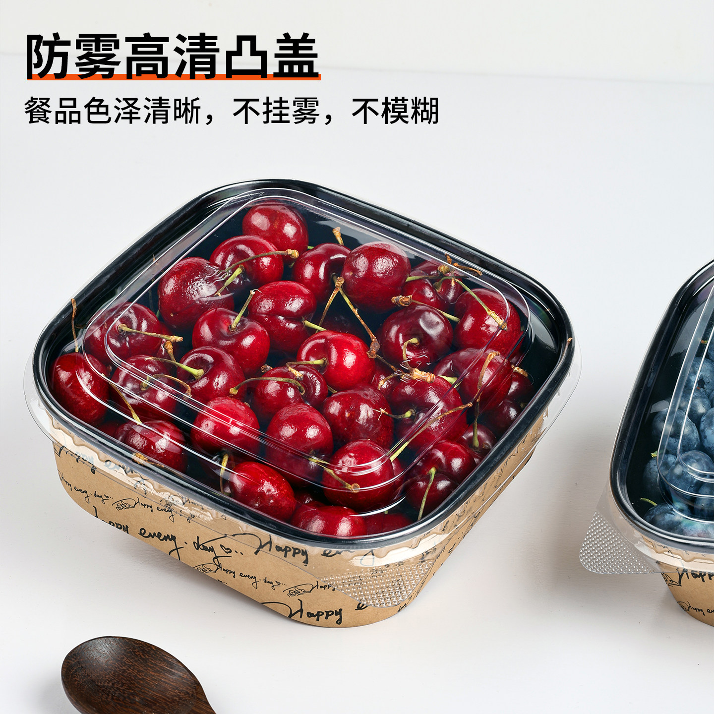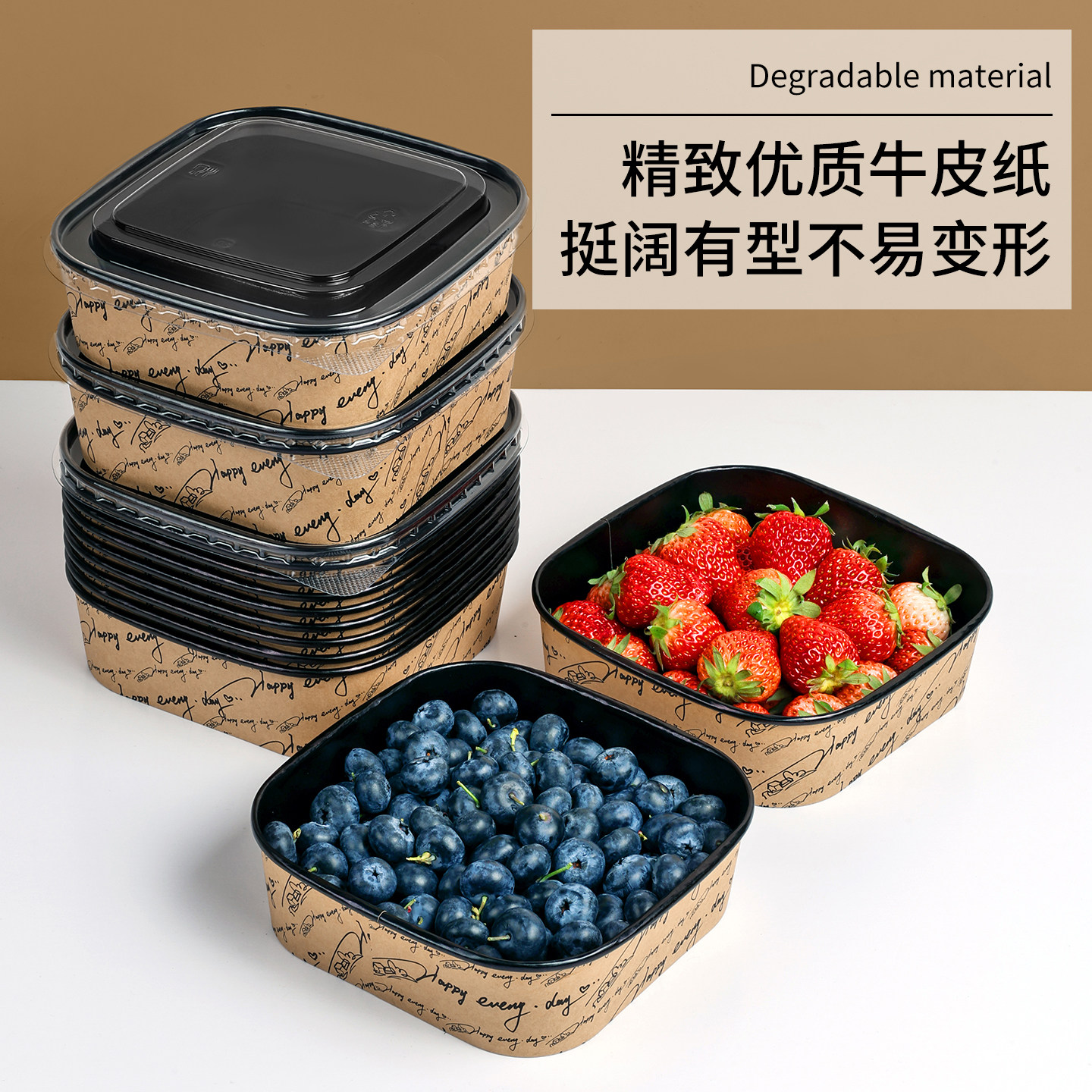 新款水果盒黑色英文字母正方形牛皮纸盒车厘子草莓菠萝蜜果切盒