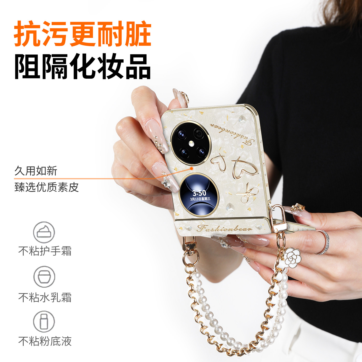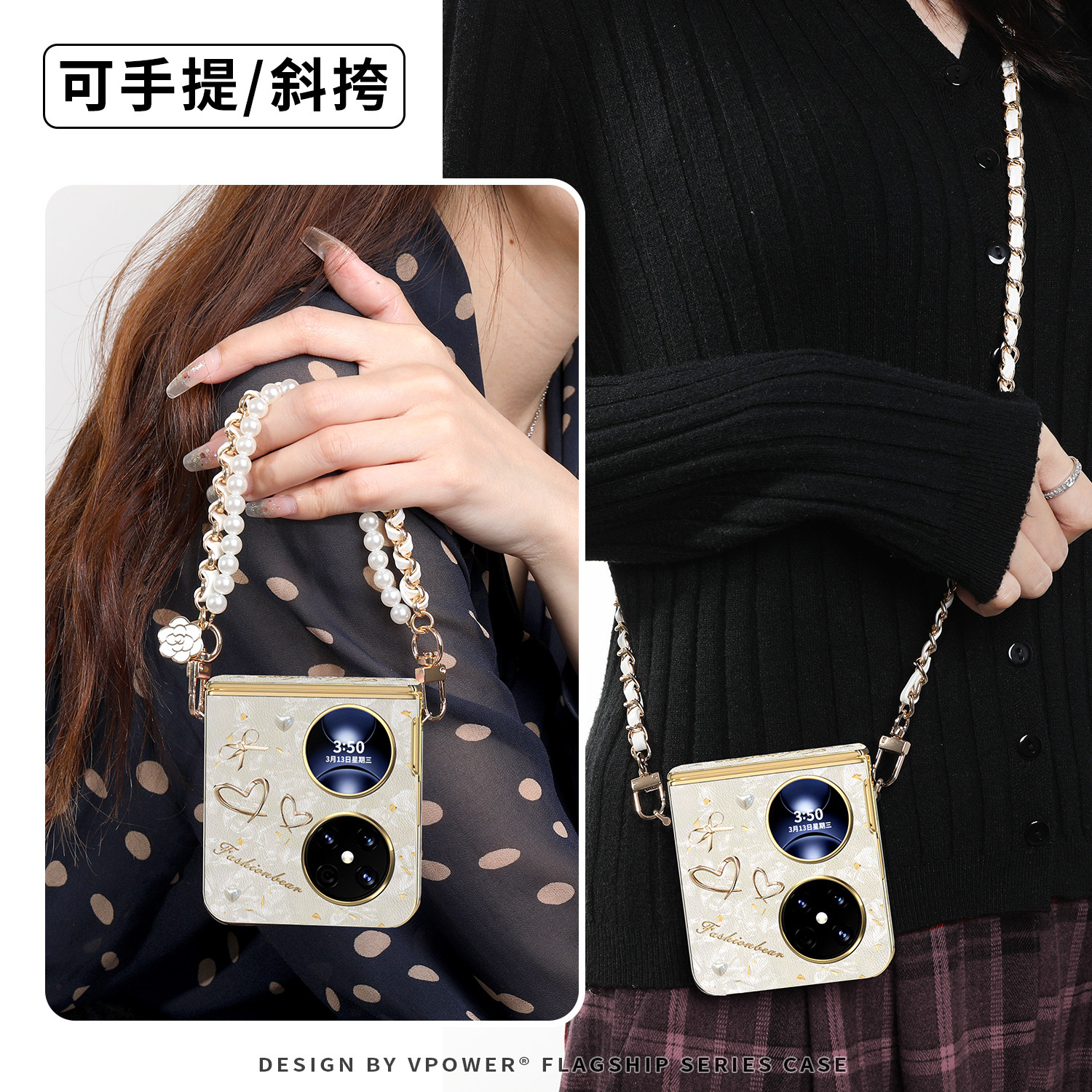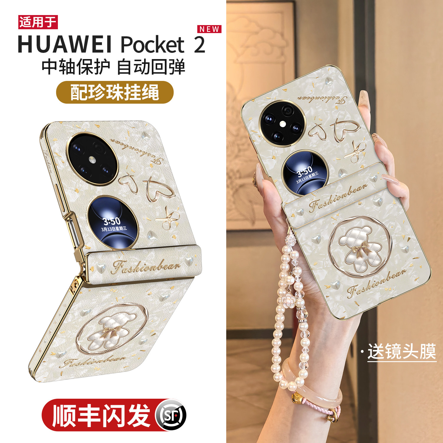 适用于华为折叠pocket2手机壳新款pocket 2艺术定制版高级全包防摔优享版保护壳斜跨挂绳超薄皮纹轻奢外壳女