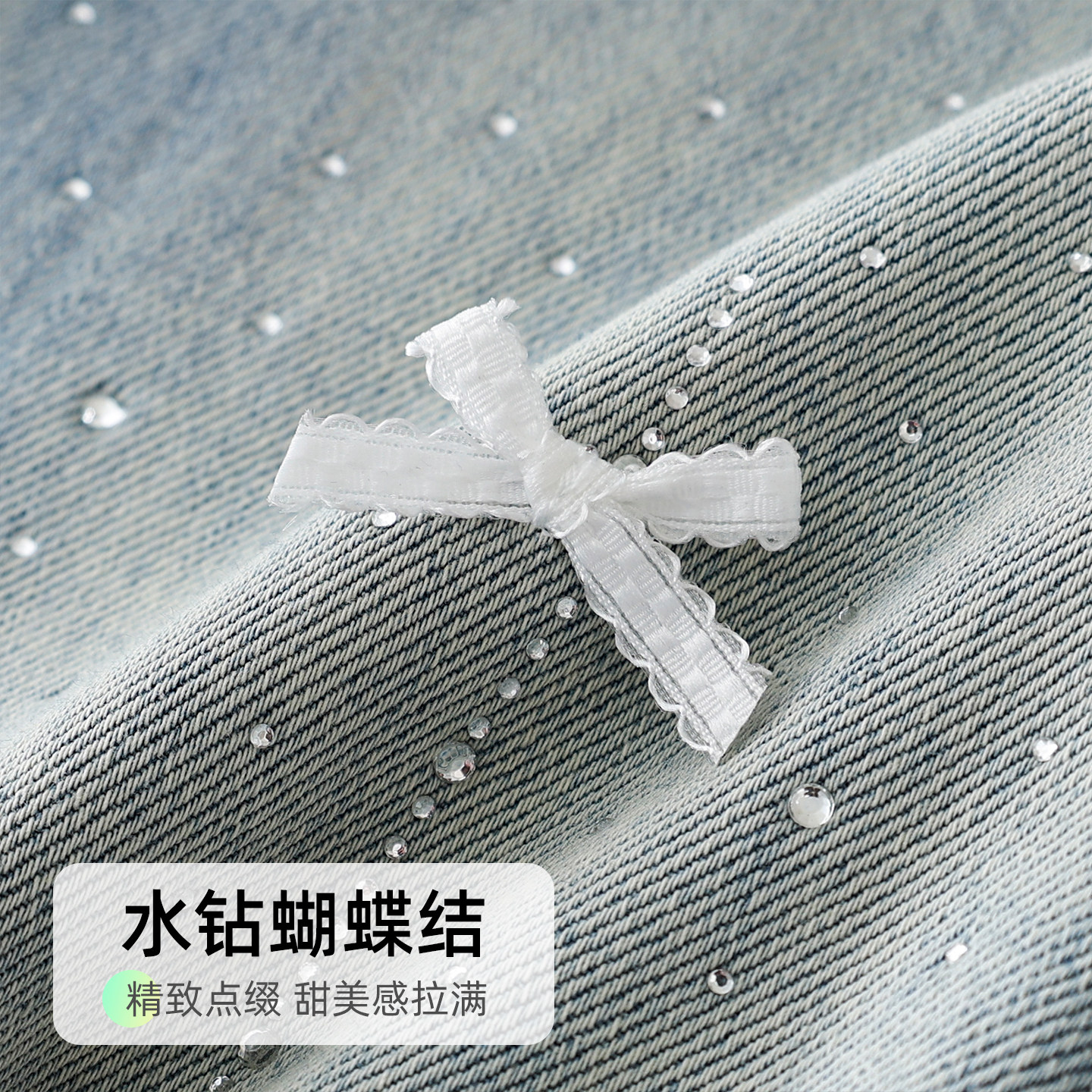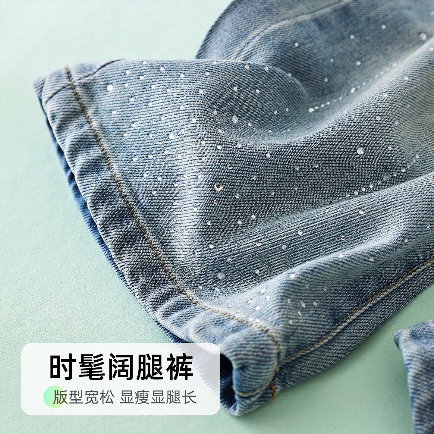 蔚未来女童牛仔裤春装2026新款裤子儿童纯棉直筒裤女大童烫钻长裤