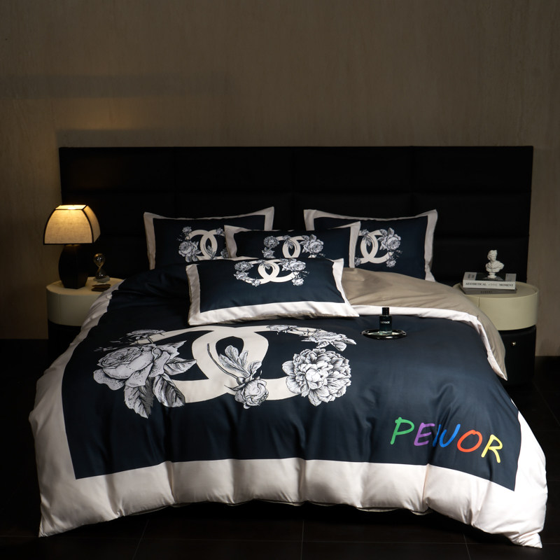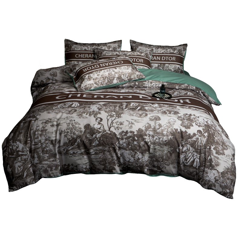 潮牌网红美式轻奢复古风高级感男生黑色水墨画纯棉床单被套四件套