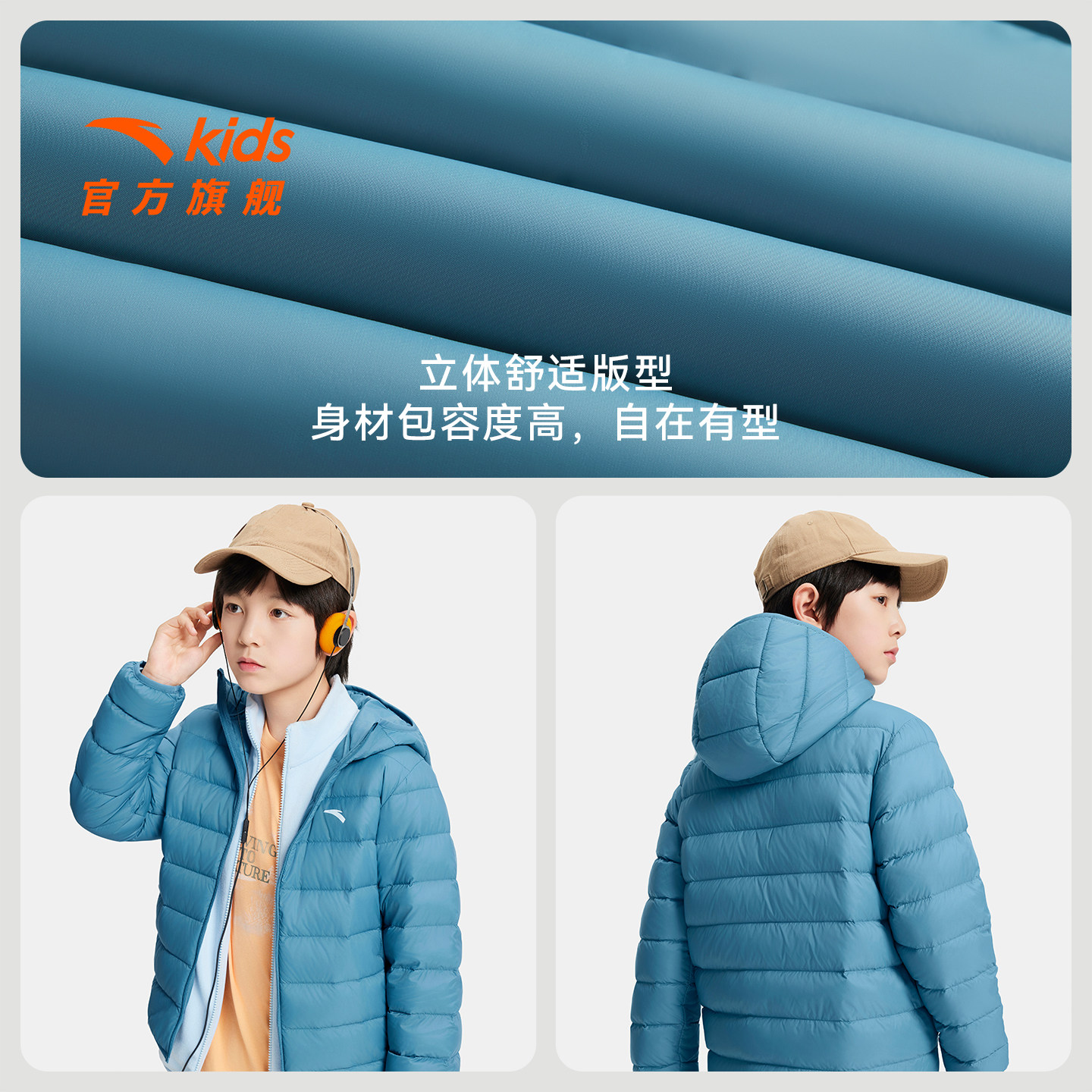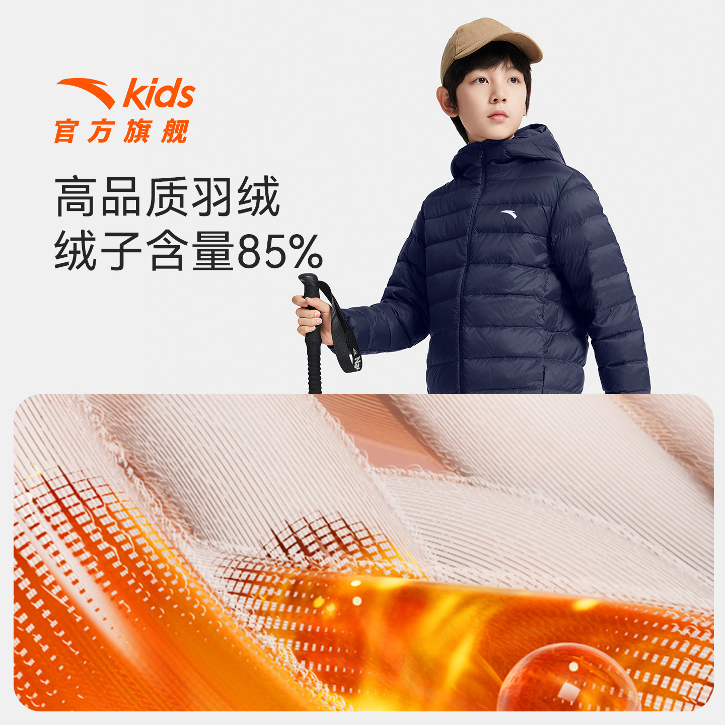 安踏儿童男女童轻薄羽绒服2026冬季新款舒适保暖中大童连帽羽绒服