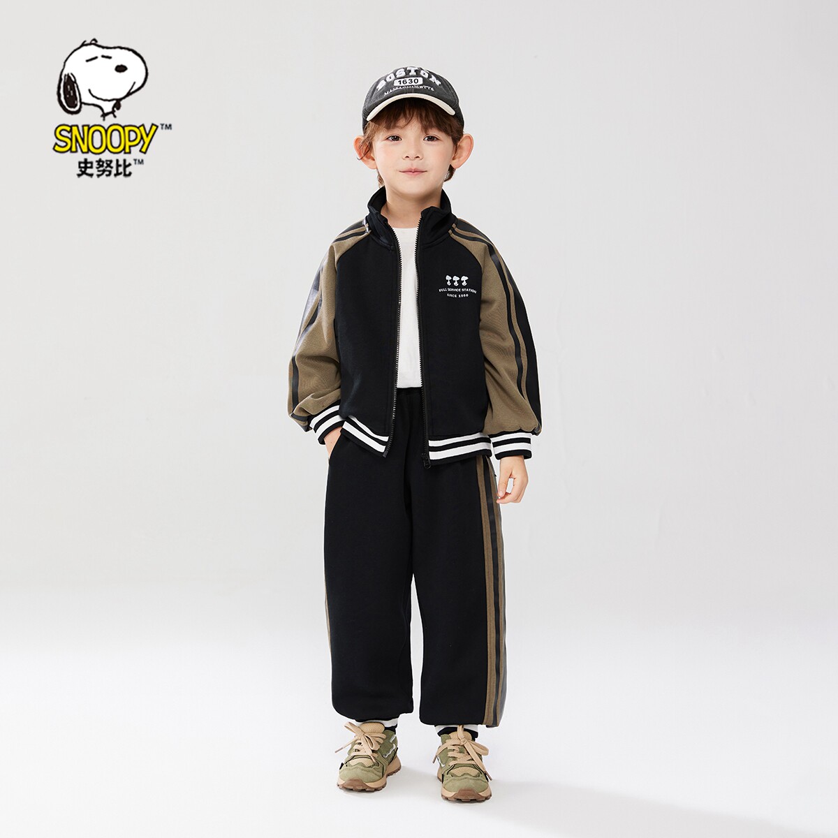 史努比男童套装加绒秋冬加厚2026新款儿童运动卫衣春秋女童两件套