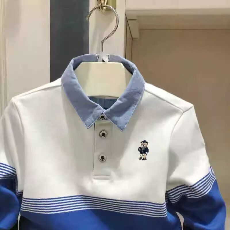 26春秋款儿童T恤男童纯棉假两件洋气POLO衫中大童学院风长袖上衣