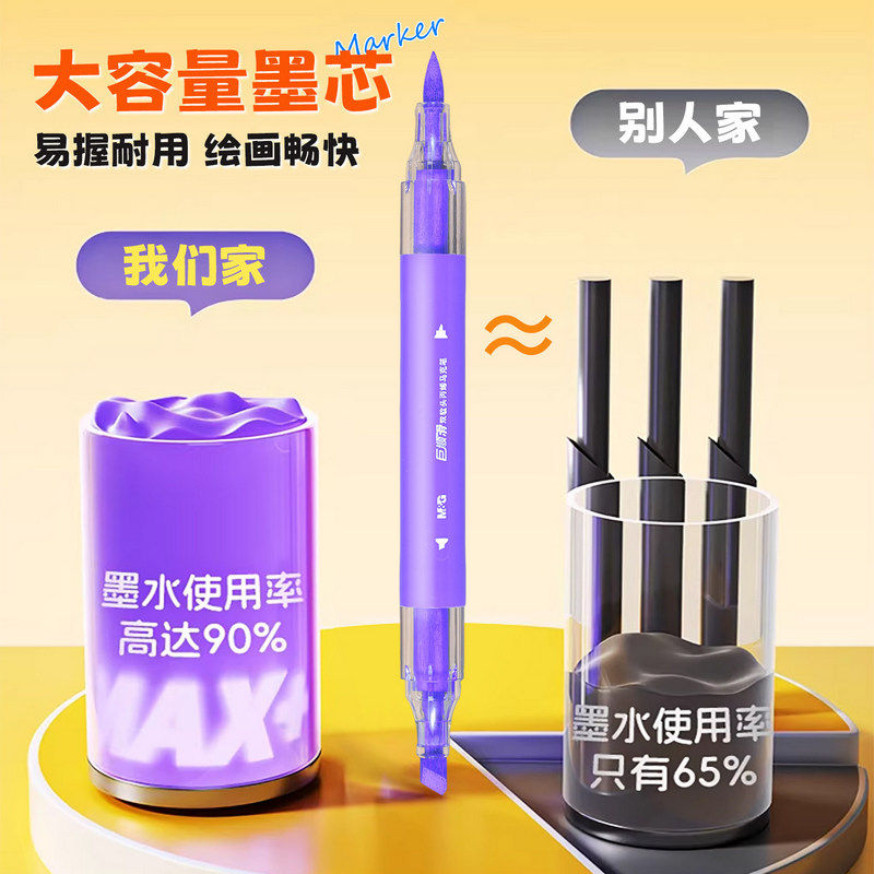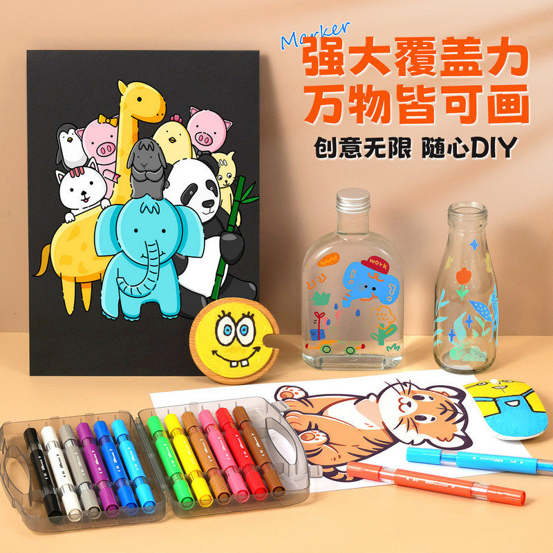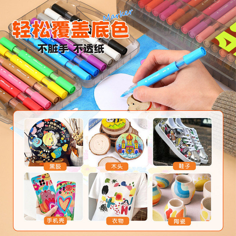 晨光丙烯马克笔儿童图画笔安全双软头丙烯马克笔学生涂鸦画笔美术专用可叠色速干水彩笔学生手账笔套装