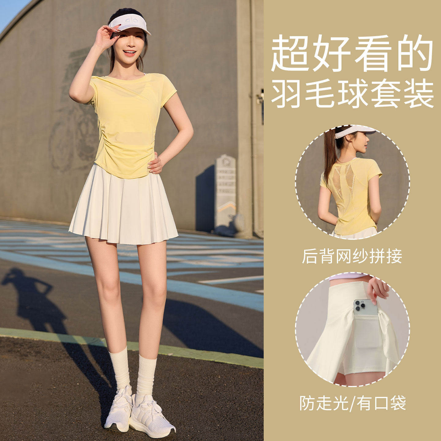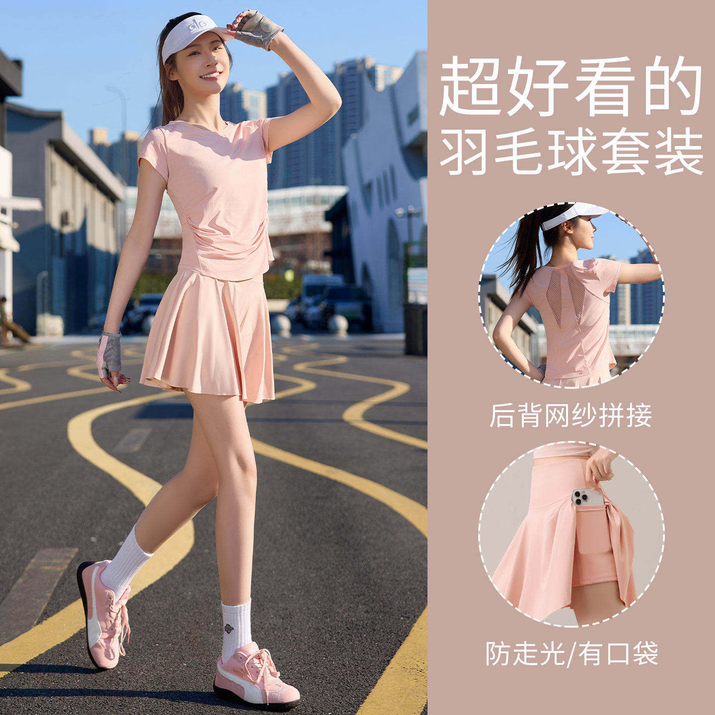 羽毛球服女夏2026新款跑步运动套装宽松瑜伽罩衫速干健身衣网球裙