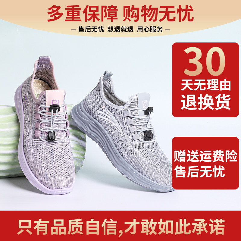 福连升女款夏季网面透气运动鞋跑步减震轻便软底一脚蹬超轻防滑鞋