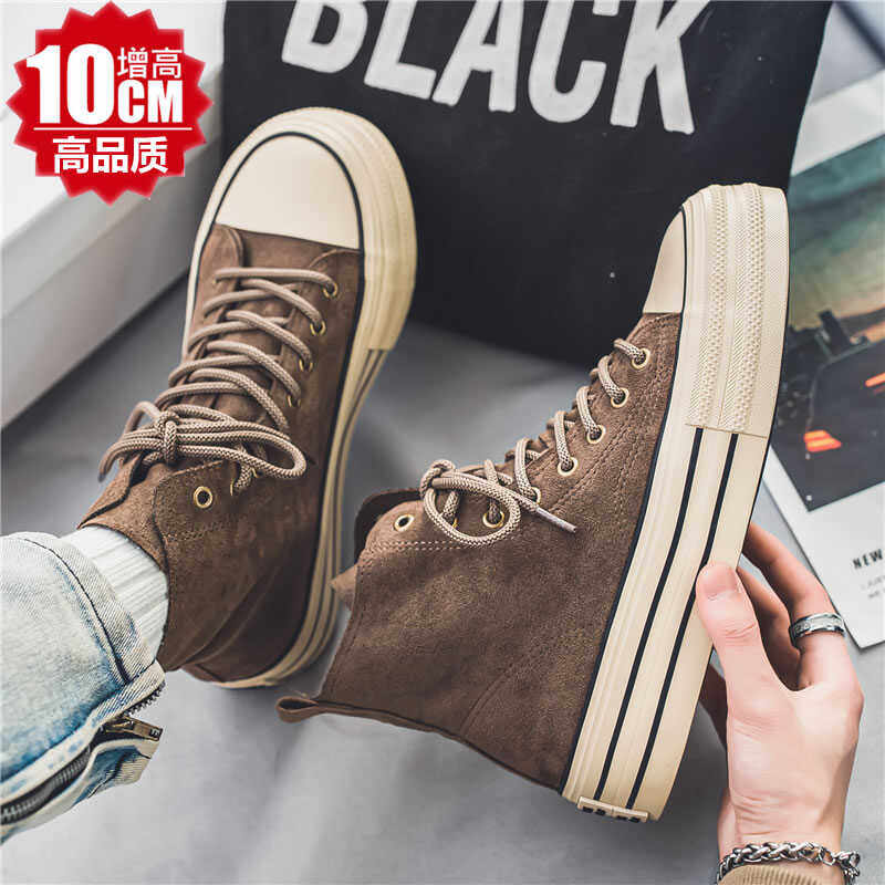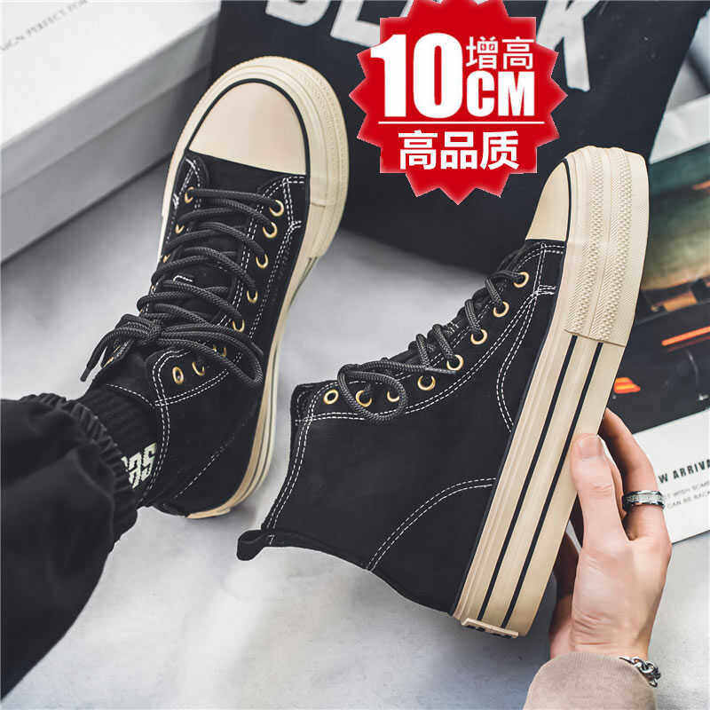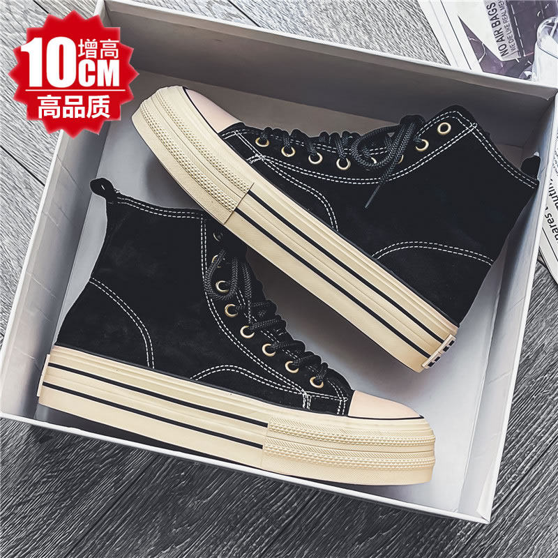 春夏百搭潮鞋COS女内增高10cm8cm黑色复古高帮帆布鞋厚底休闲板鞋