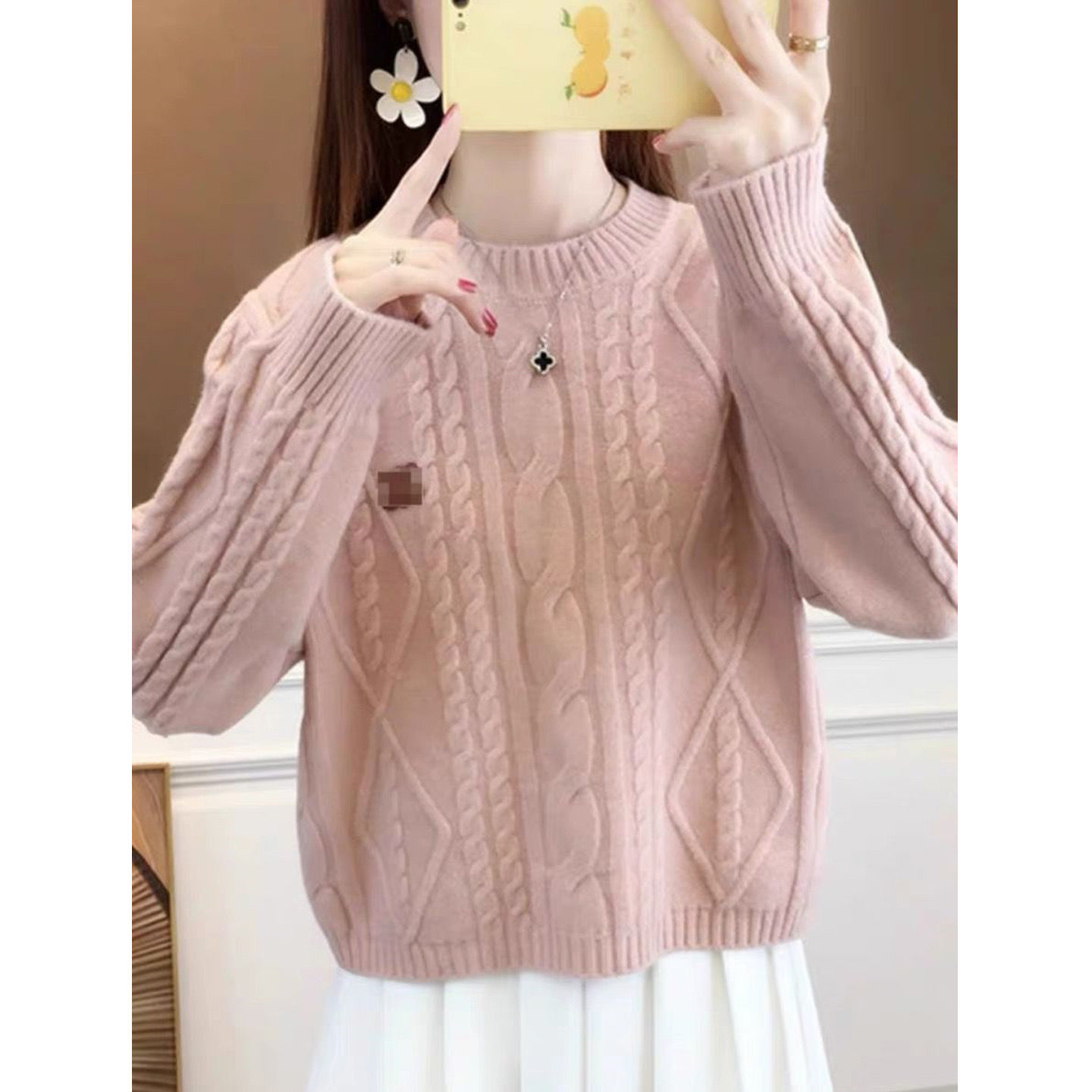 麻花毛衣女款2026新款秋冬穿搭小个子宽松套头针织衫加厚保暖外套