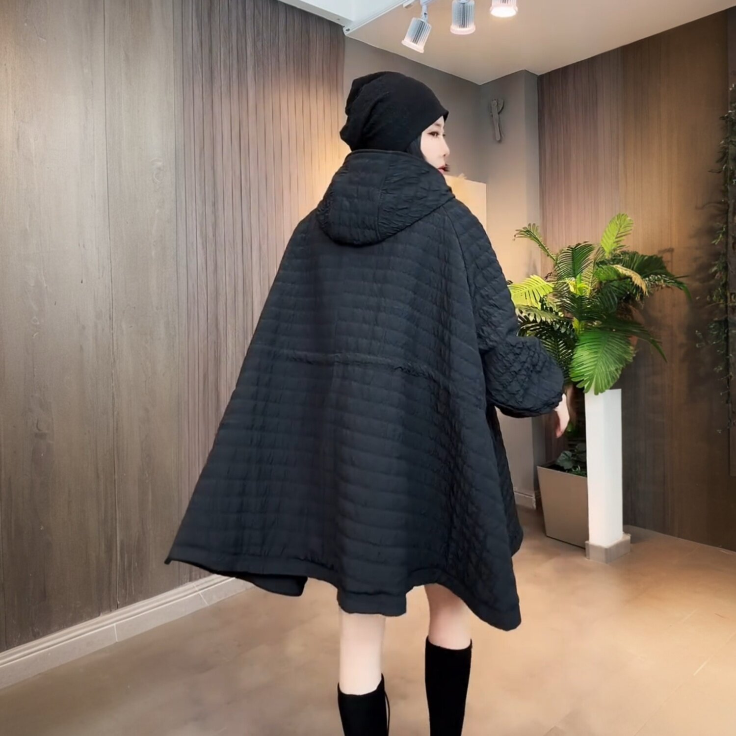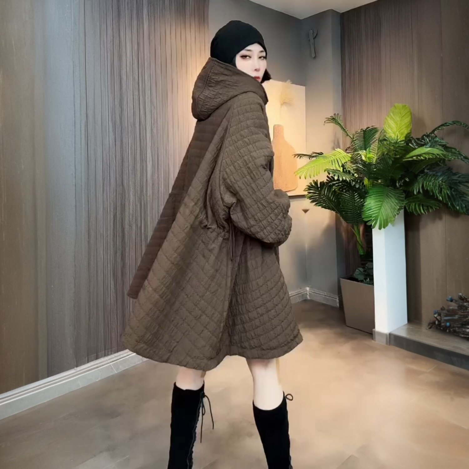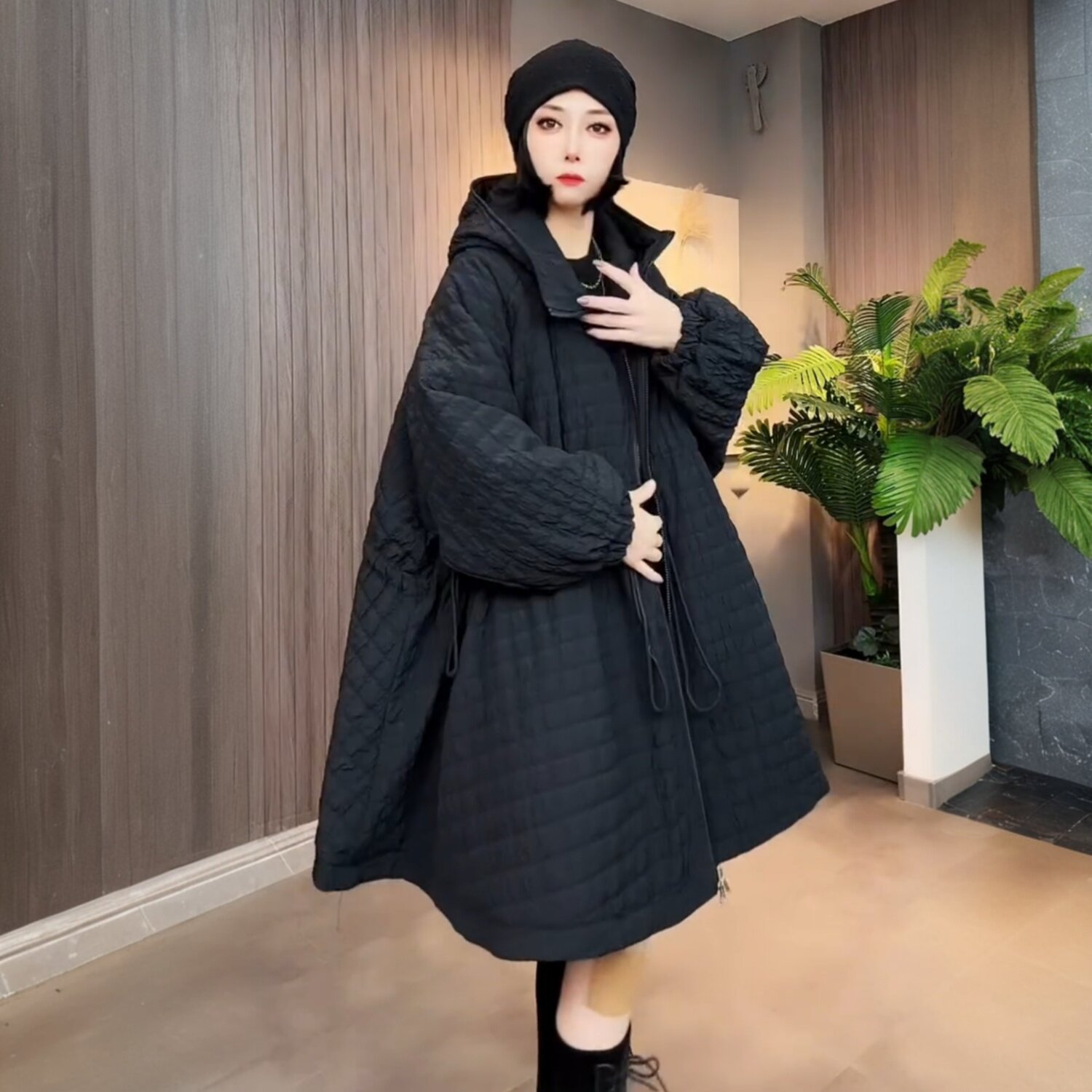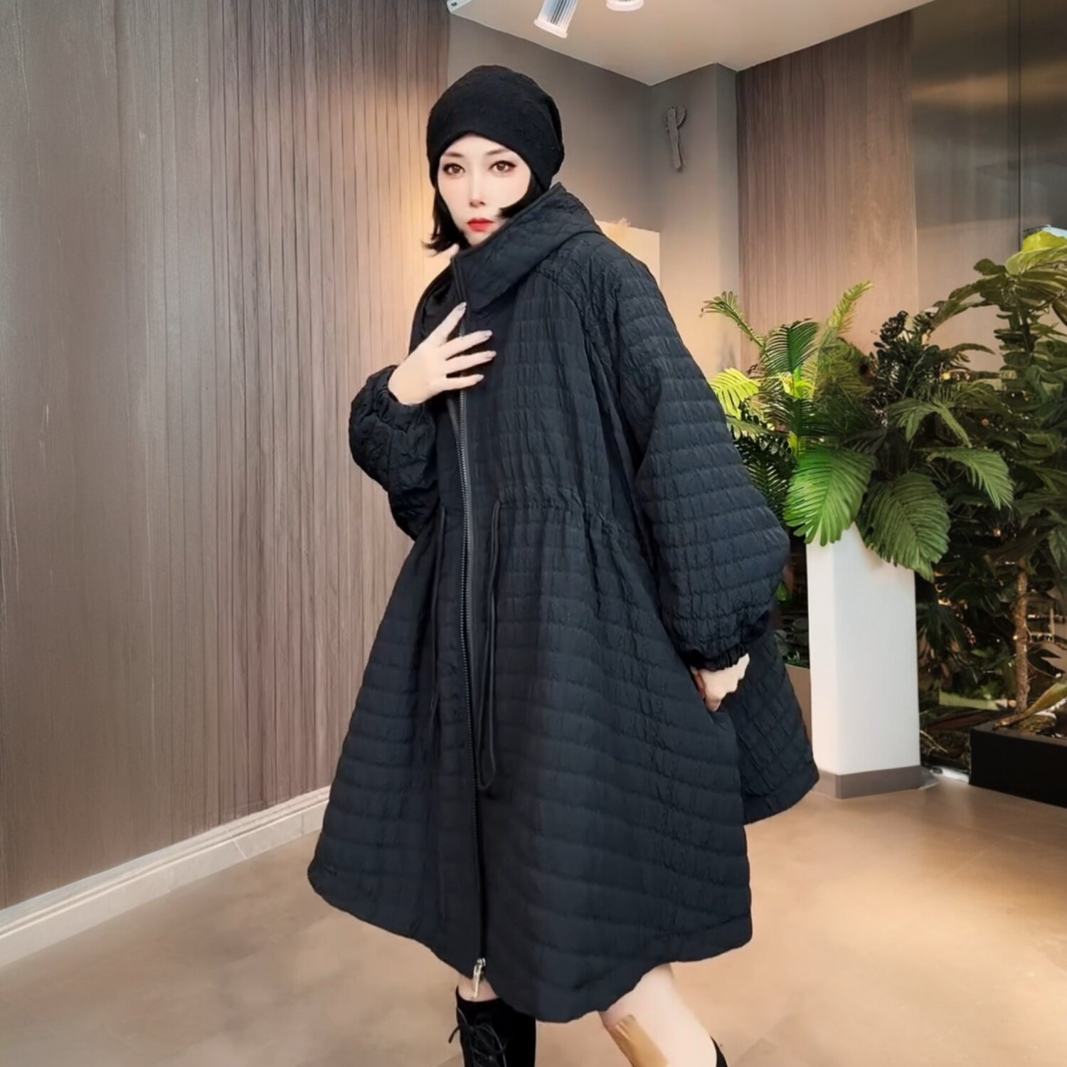 冬季新款洋气休闲宽松中长款连帽加棉加厚外套欧洲站风衣时尚棉服