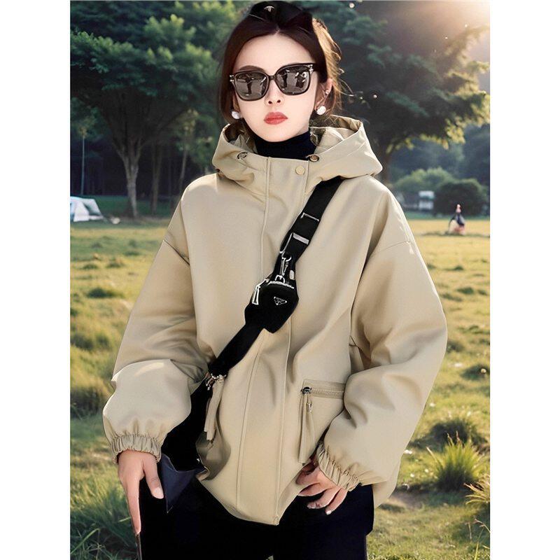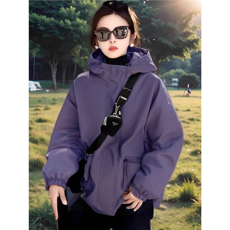 紫色欧货感冲锋衣外套女款春秋2025新款宽松休闲连帽夹克棉衣棉服