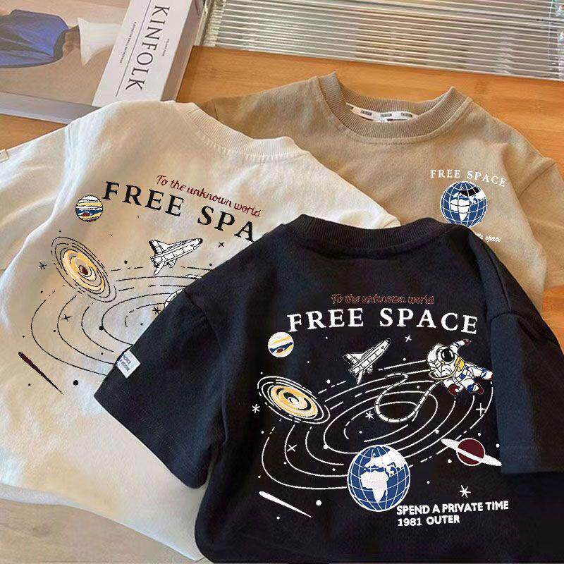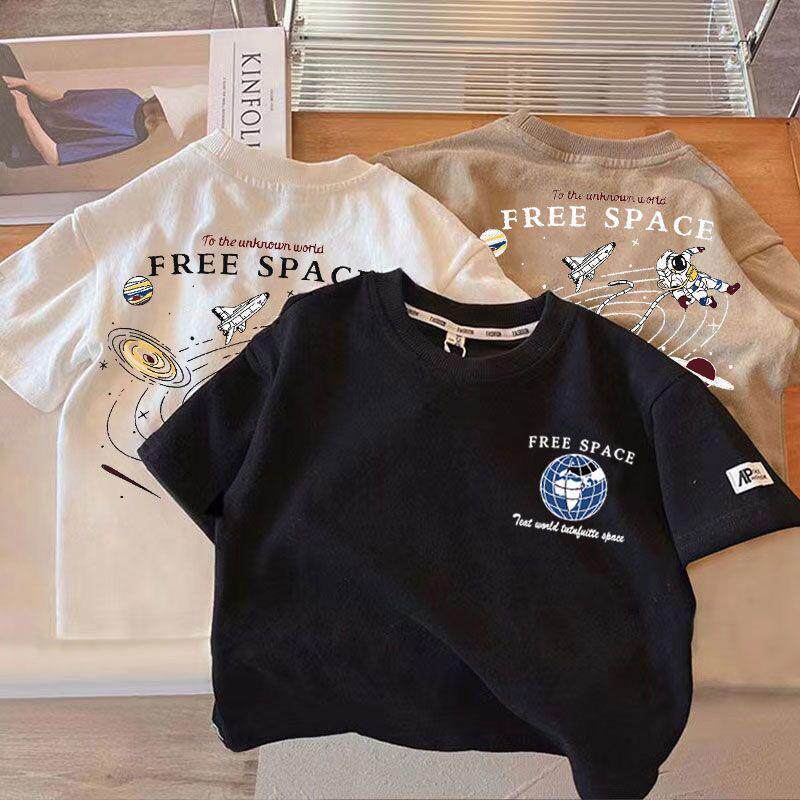 纯棉儿童夏季短袖T恤男童洋气圆领韩版ins印花卡通休闲潮流半袖衣