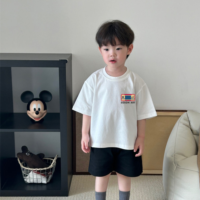 儿童韩版休闲纯棉半袖衫2026夏季男童时髦百搭圆领短袖T恤上衣潮