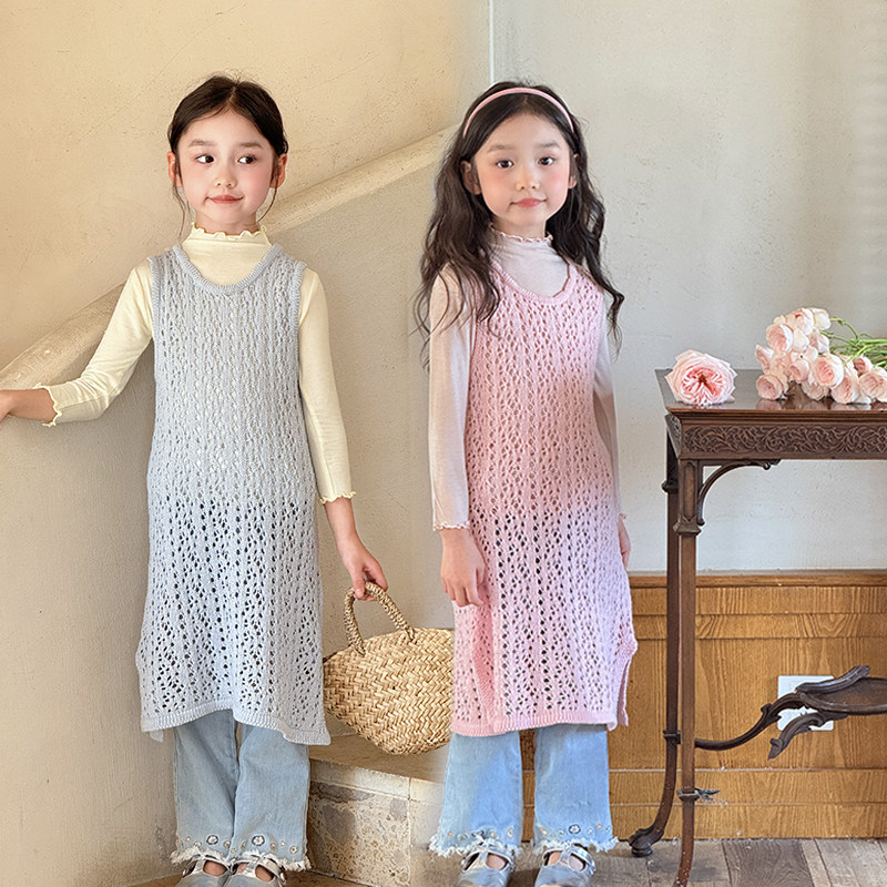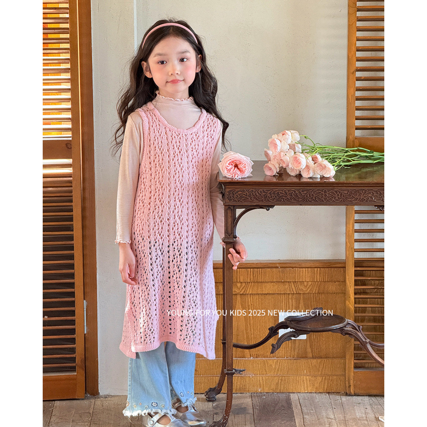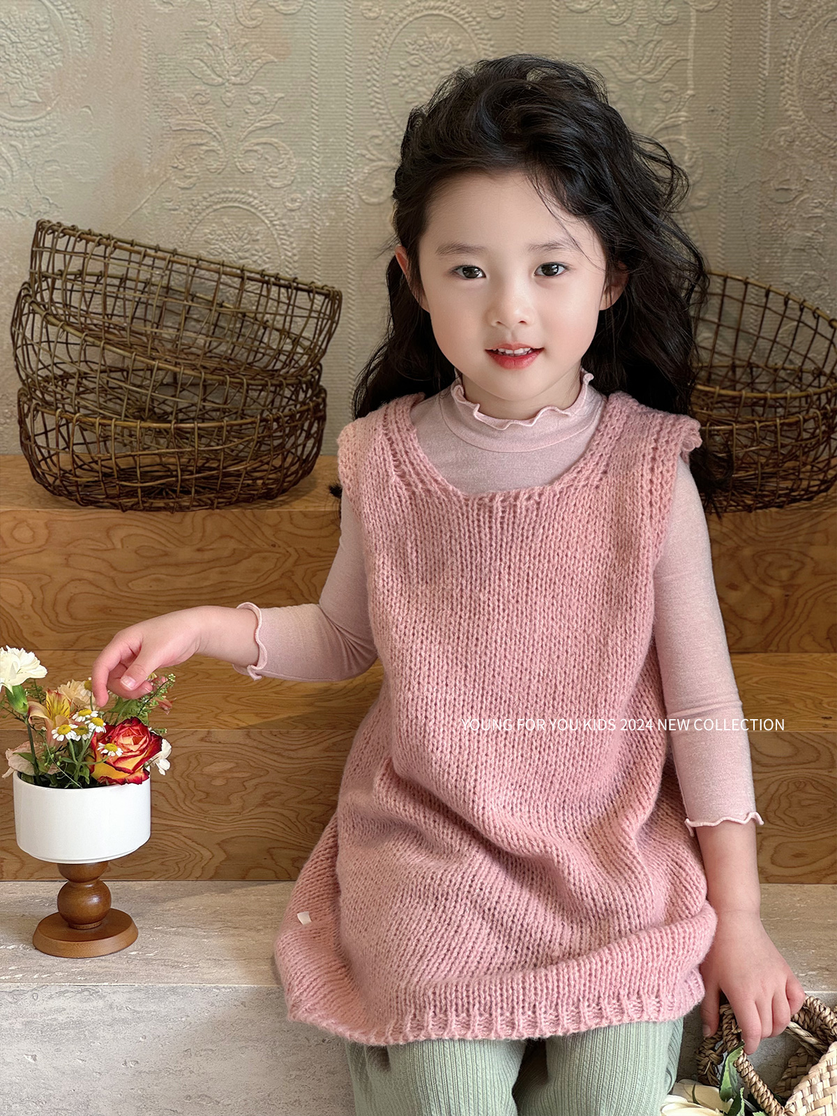 YFY春季女童韩版针织毛衣裙马甲背心裙喇叭裤套装洋气两色连衣裙