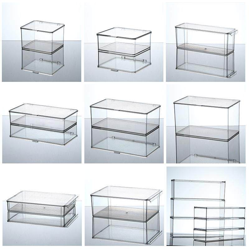收纳箱透明亚克力长方形带盖化妆品工位零食厨房杂物储物盒