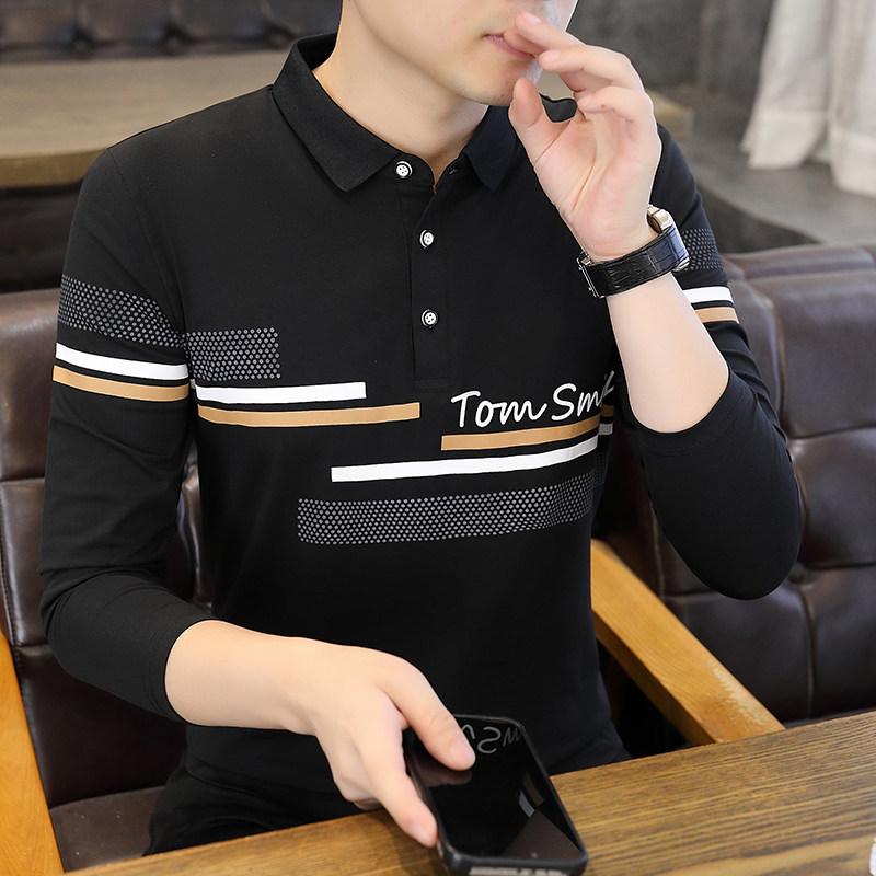 高端POLO衫男士长袖t恤2026春秋季新款翻领纯棉修身休闲男款半袖