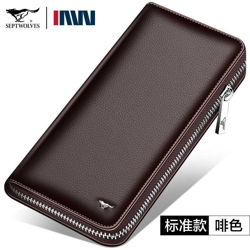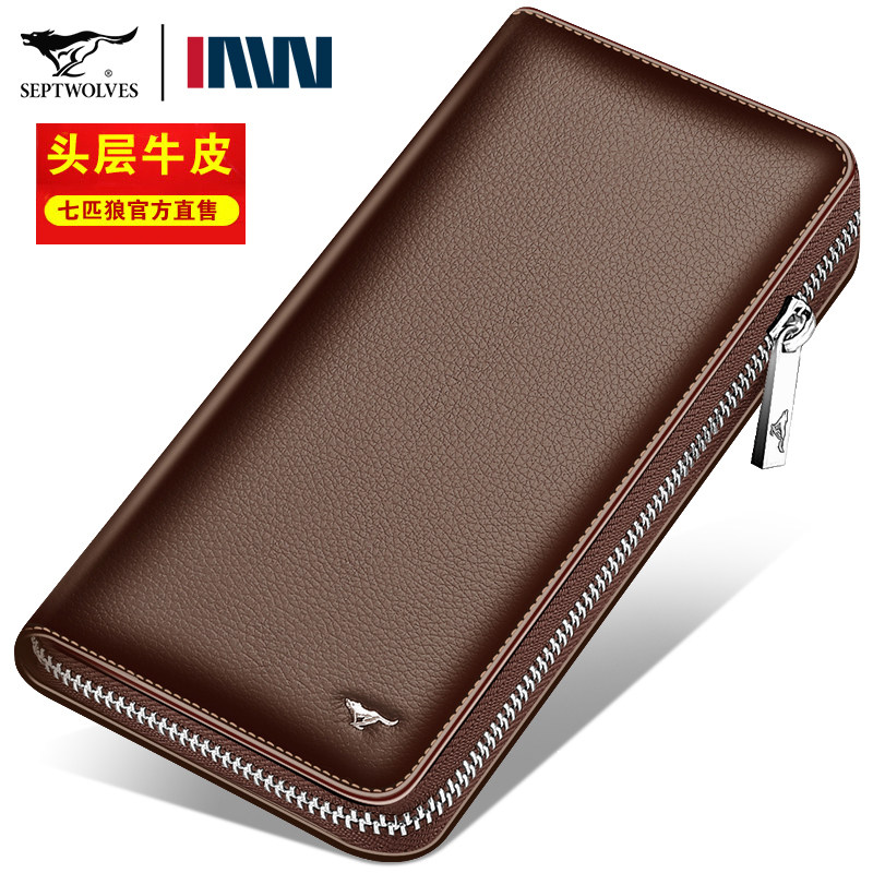 七匹狼钱包男长款拉链大容量手包真皮青年潮牌皮夹皮包纯牛皮礼物