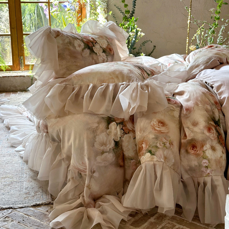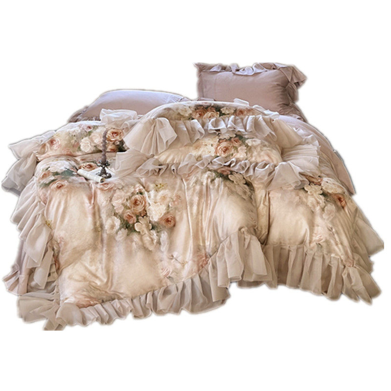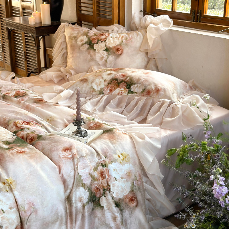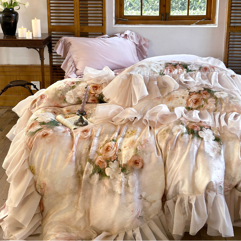 法式浪漫花卉天丝棉四件套春夏季凉感复古风印染丝滑被套床上用品