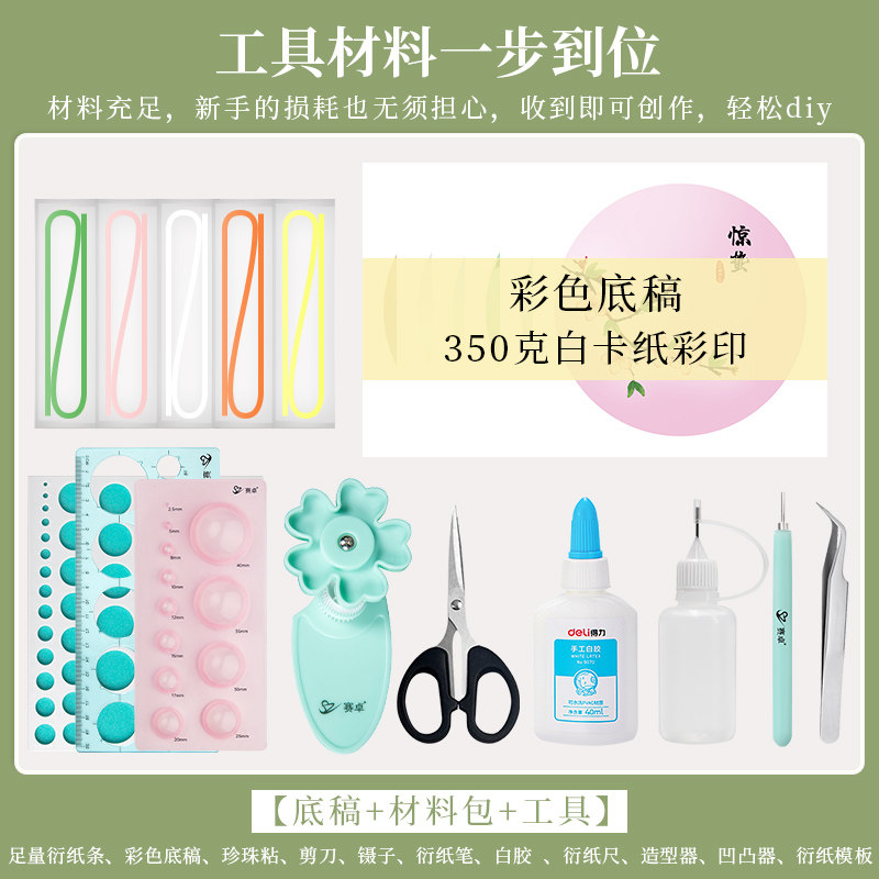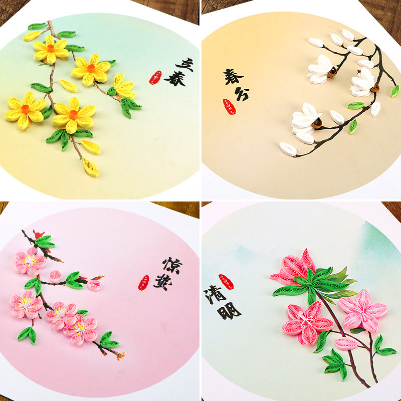 赛卓圆形古风中国传统节日24节气衍纸diy材料包春季6款小学生儿童手工非遗社团活动课创意衍纸画成品礼物摆件