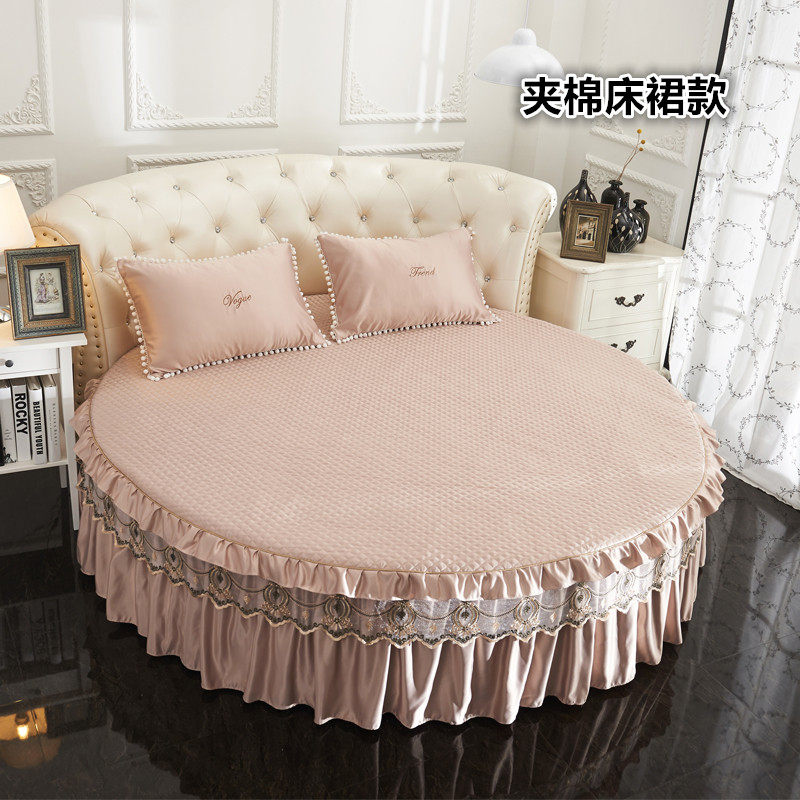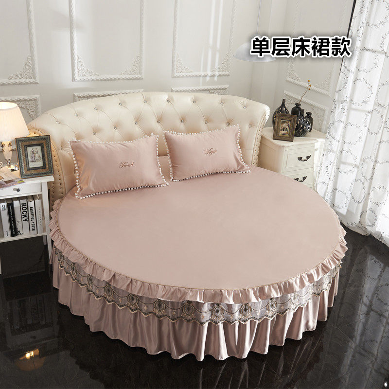 加厚水洗真丝圆床四件套夏季冰丝床罩圆形床裙圆床笠床套床上用品