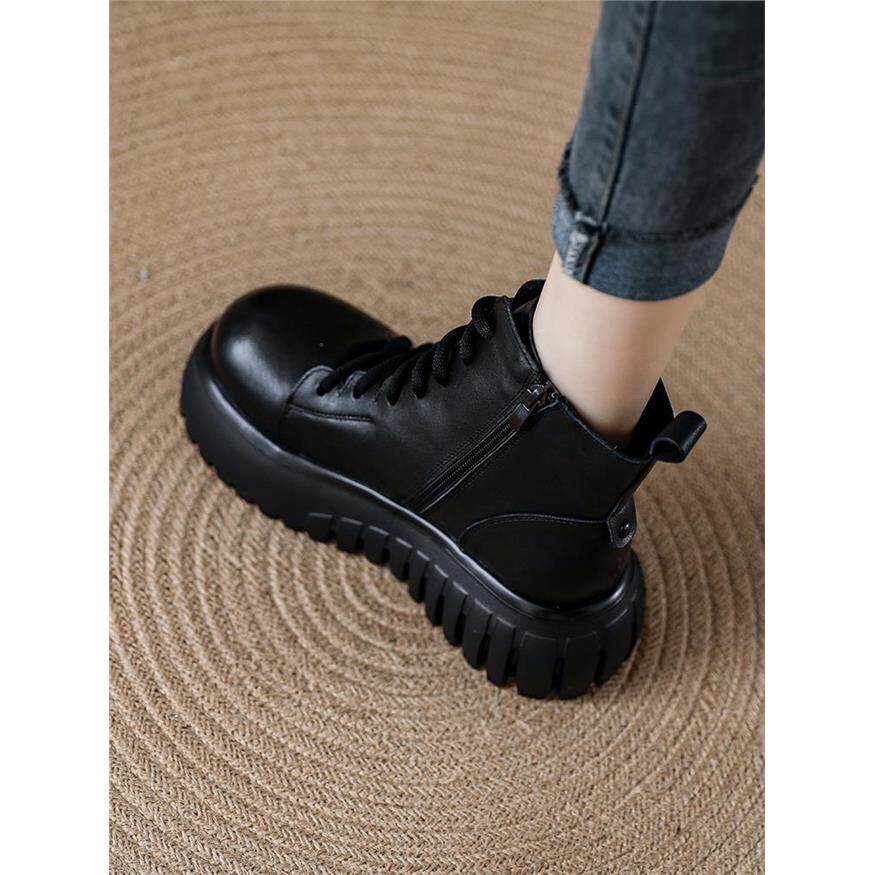 秋季爆款真皮覆古马丁靴女款头层牛皮厚底松糕小个子增高短靴女鞋