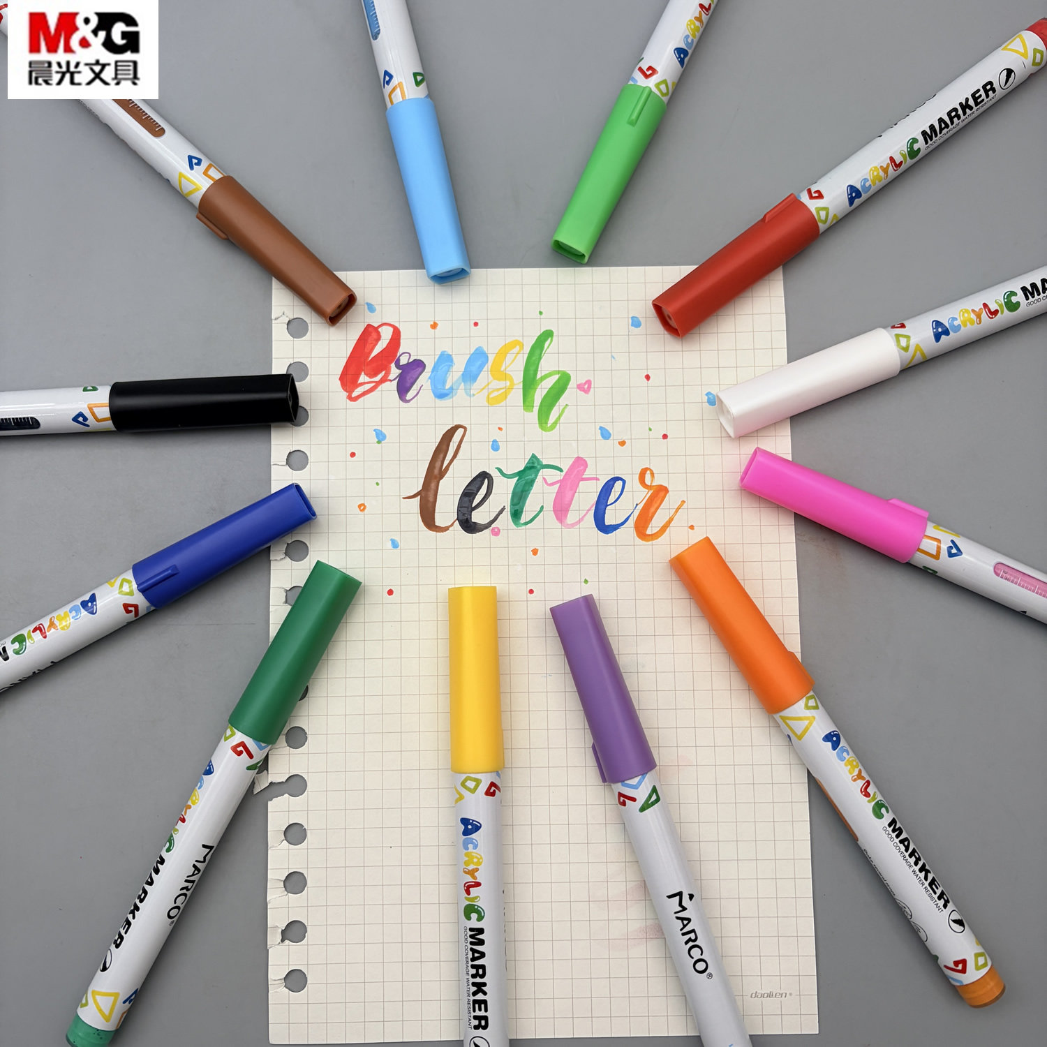 晨光直液式软头丙烯马克笔12/24/36/48色彩鲜艳拔盖即用出墨稳定多用途学生美术画画涂鸦填色18702E/4E/5E/6E