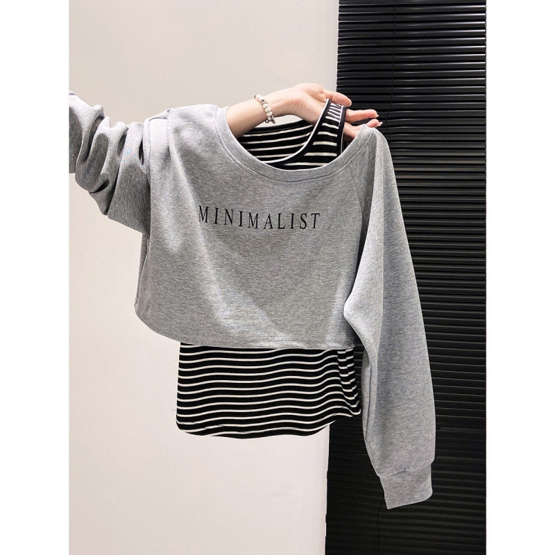 女童条纹卫衣春秋季新款儿童长袖T恤薄款洋气中大童打底衫两件套