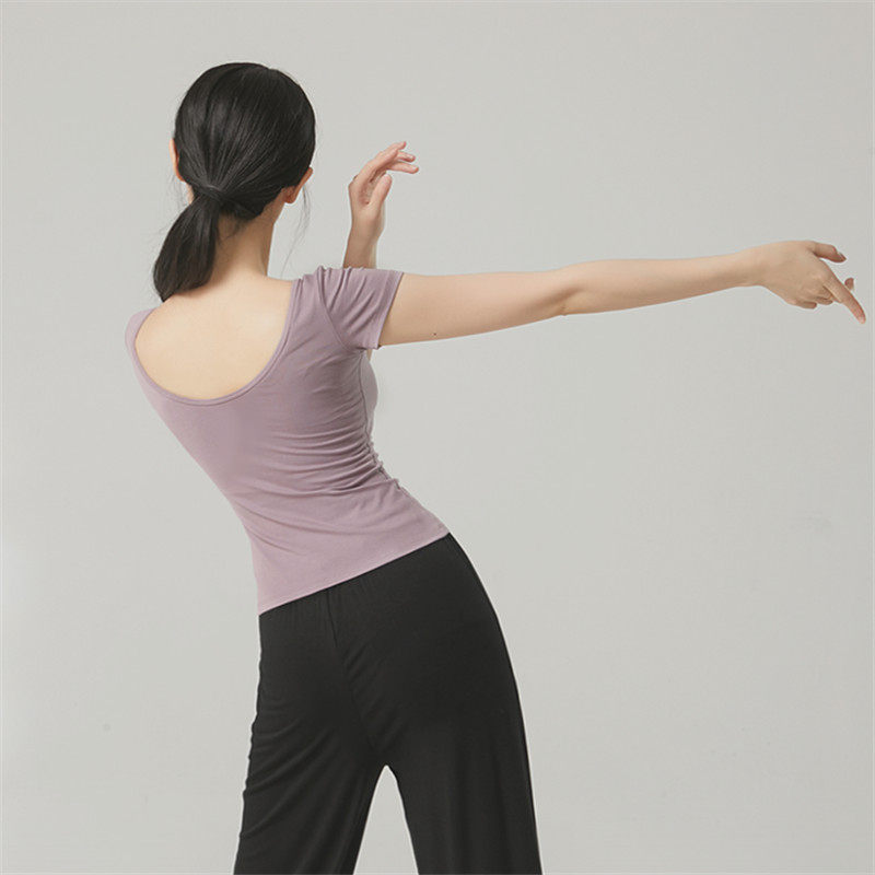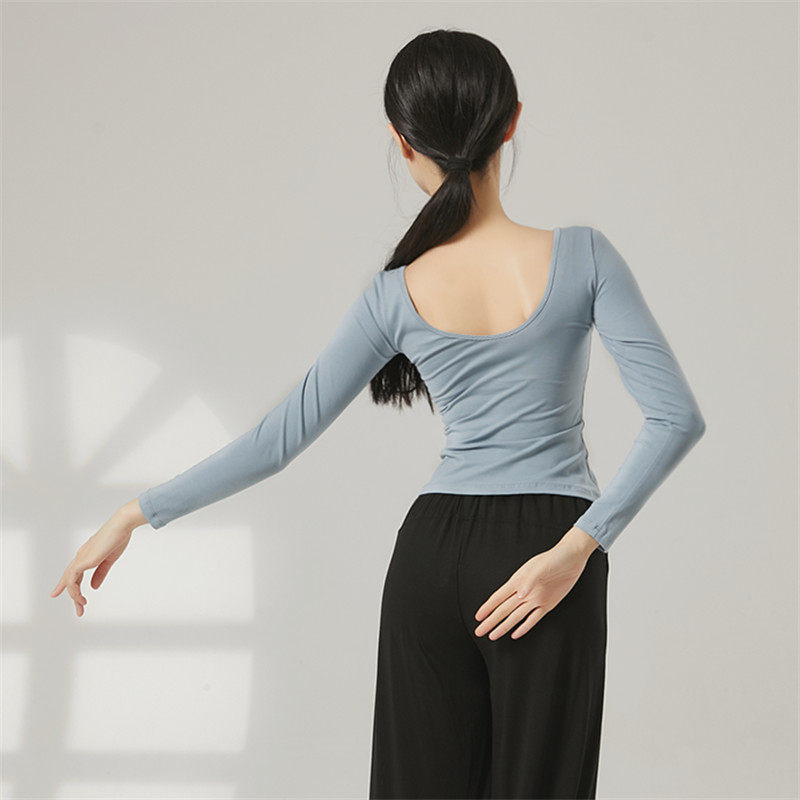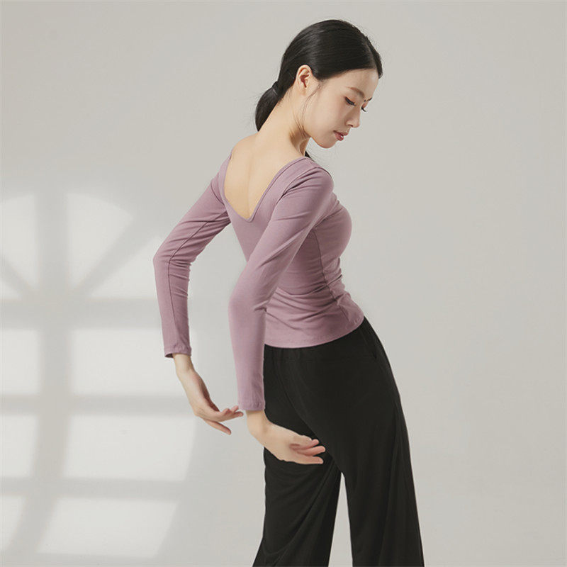 纯棉v领露背芭蕾形体服现代舞蹈服装成人专用练功服上衣女款新款