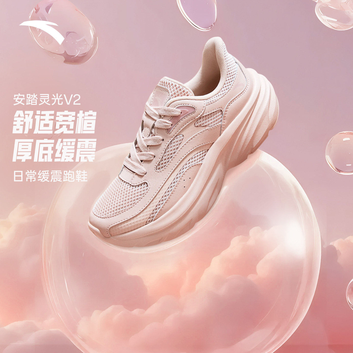 安踏灵光V2丨厚底增高宽楦老爹鞋女鞋2026春季新款软底舒适运动鞋