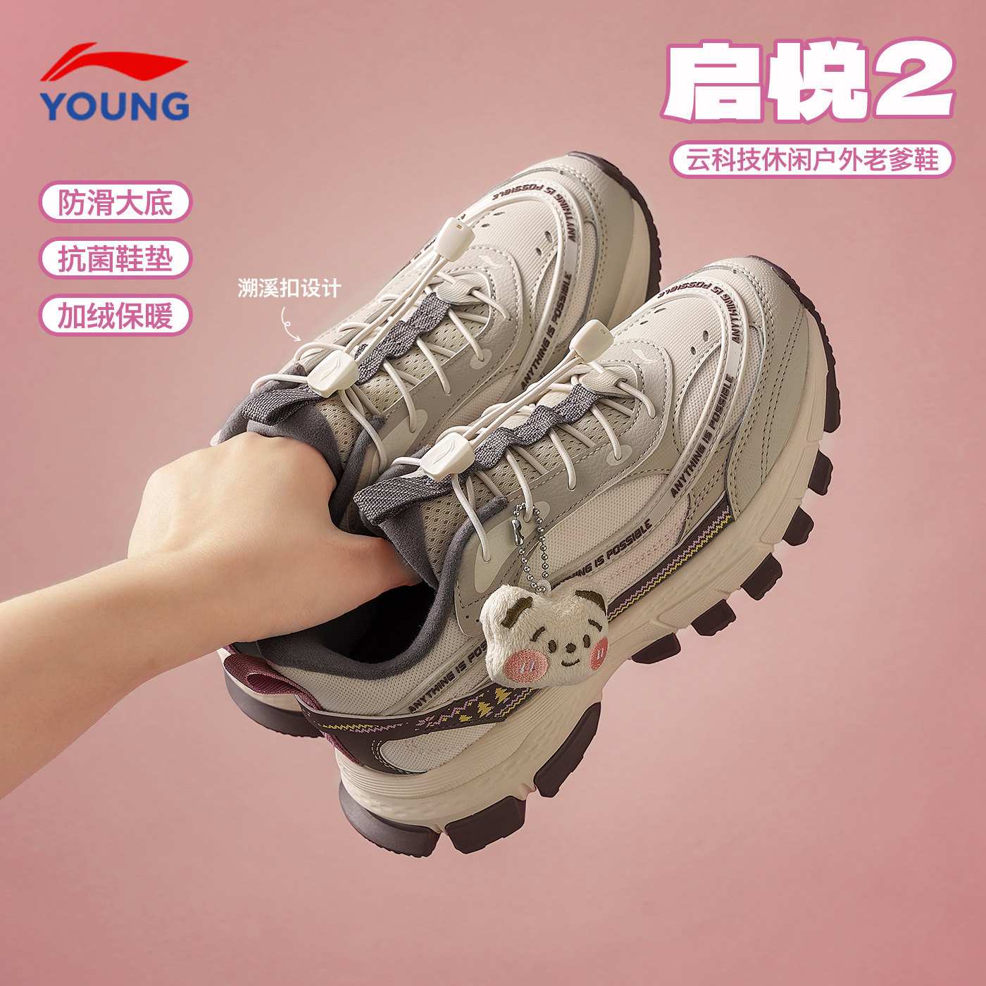 李宁女童鞋子2025新款秋冬加绒儿童鞋女大童防滑二棉鞋女款运动鞋