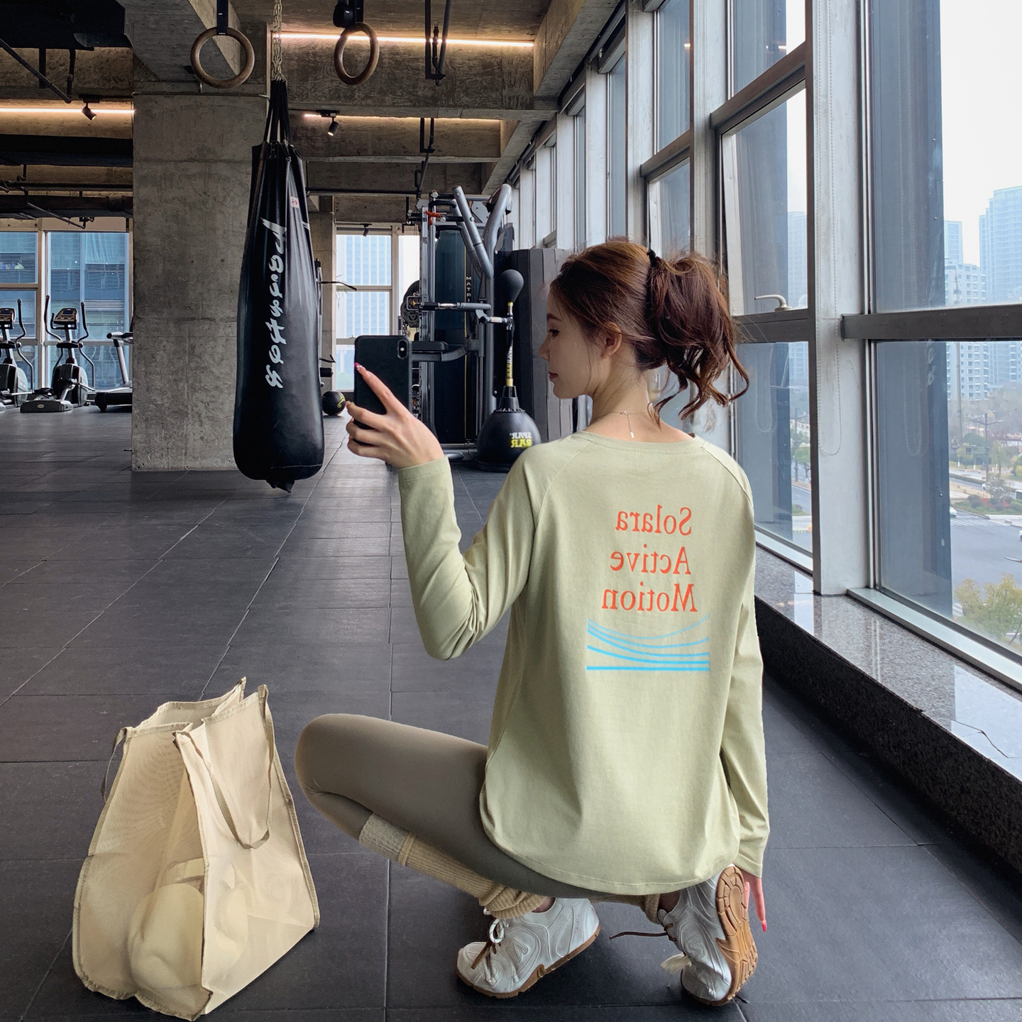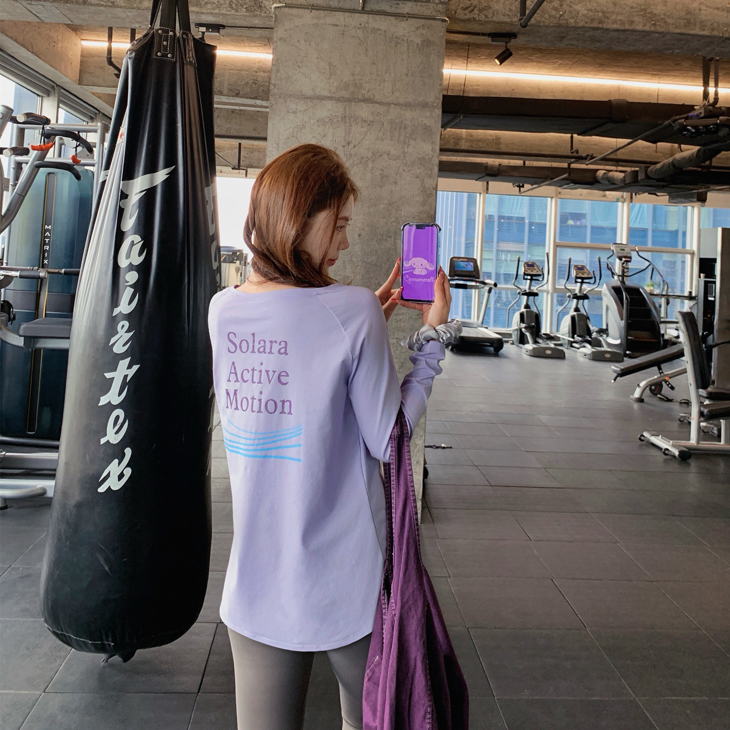 后背字母运动T恤女显瘦宽松大码胖mm瑜伽服上衣跑步健身服遮屁股