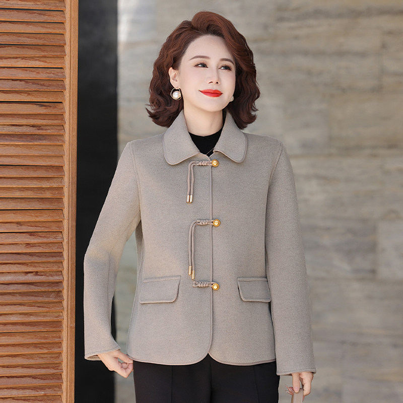 中年妈妈春装外套2026新款50岁洋气中老年女装春秋短款双面呢大衣