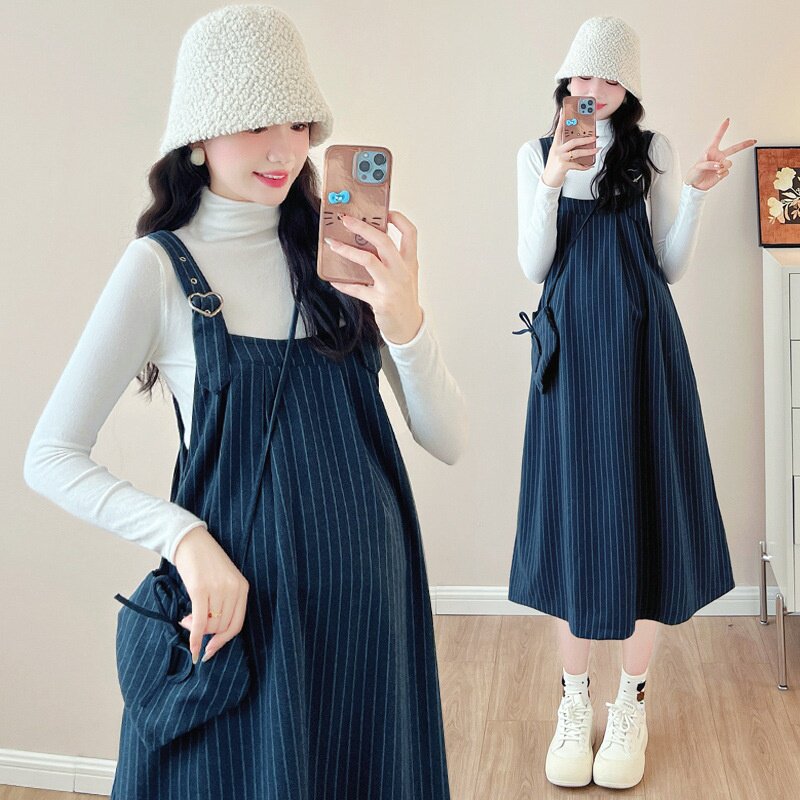 孕妇装2025秋季新款韩版时尚毛呢2件套孕妇连衣裙