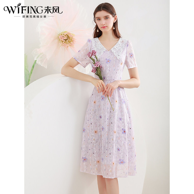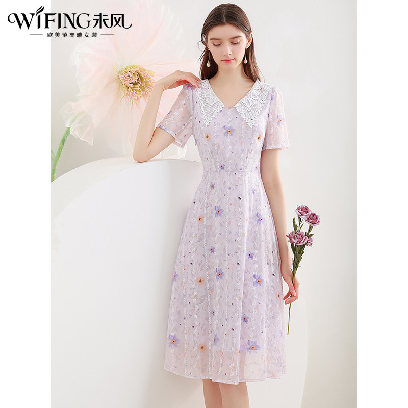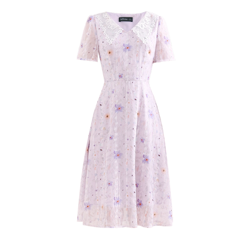 311线报网描述:夏季新款 雪纺印花 雕花V领 右侧拉链