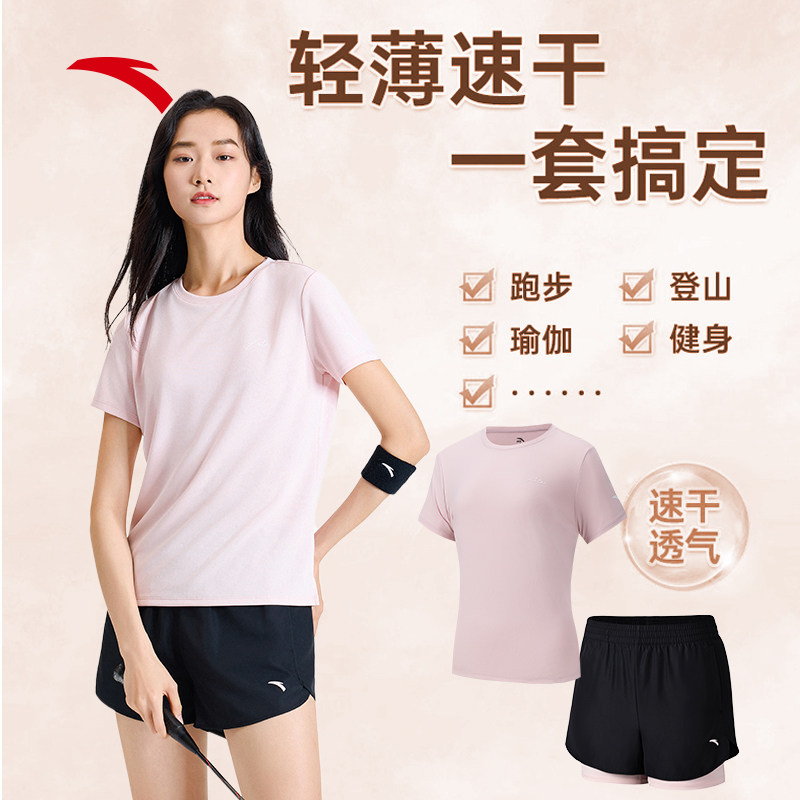 安踏运动妈妈套装女装2026新款夏季速干透气冰丝短袖短裤两件套女