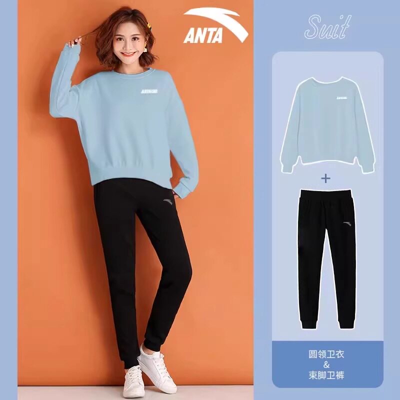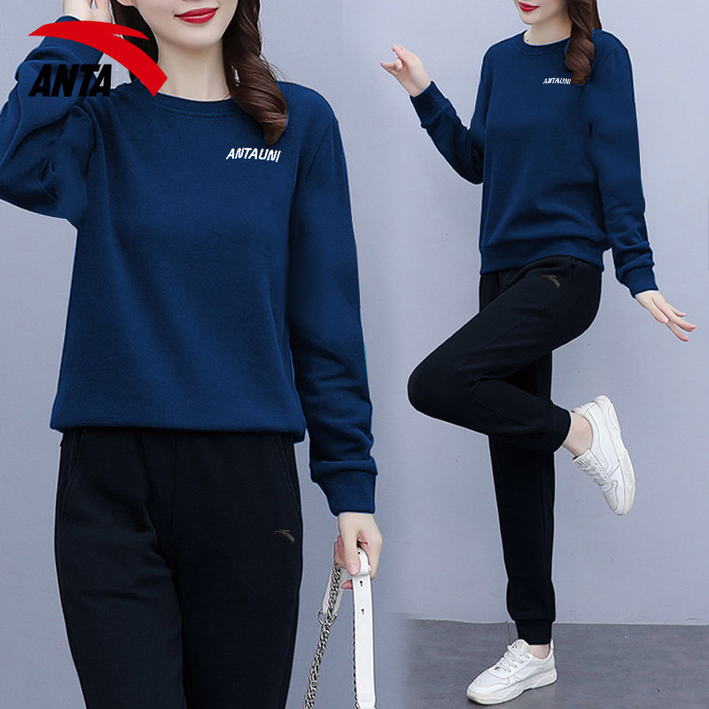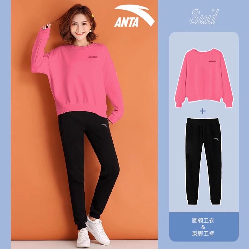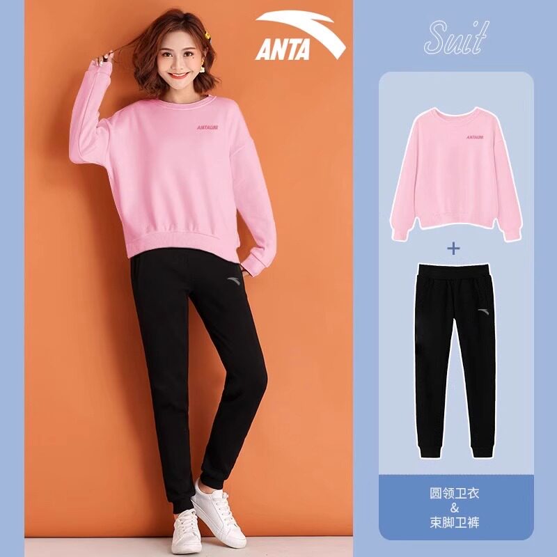 安踏中年妈妈套装女春秋时尚宽松大码运动休闲户外卫衣长裤两件套