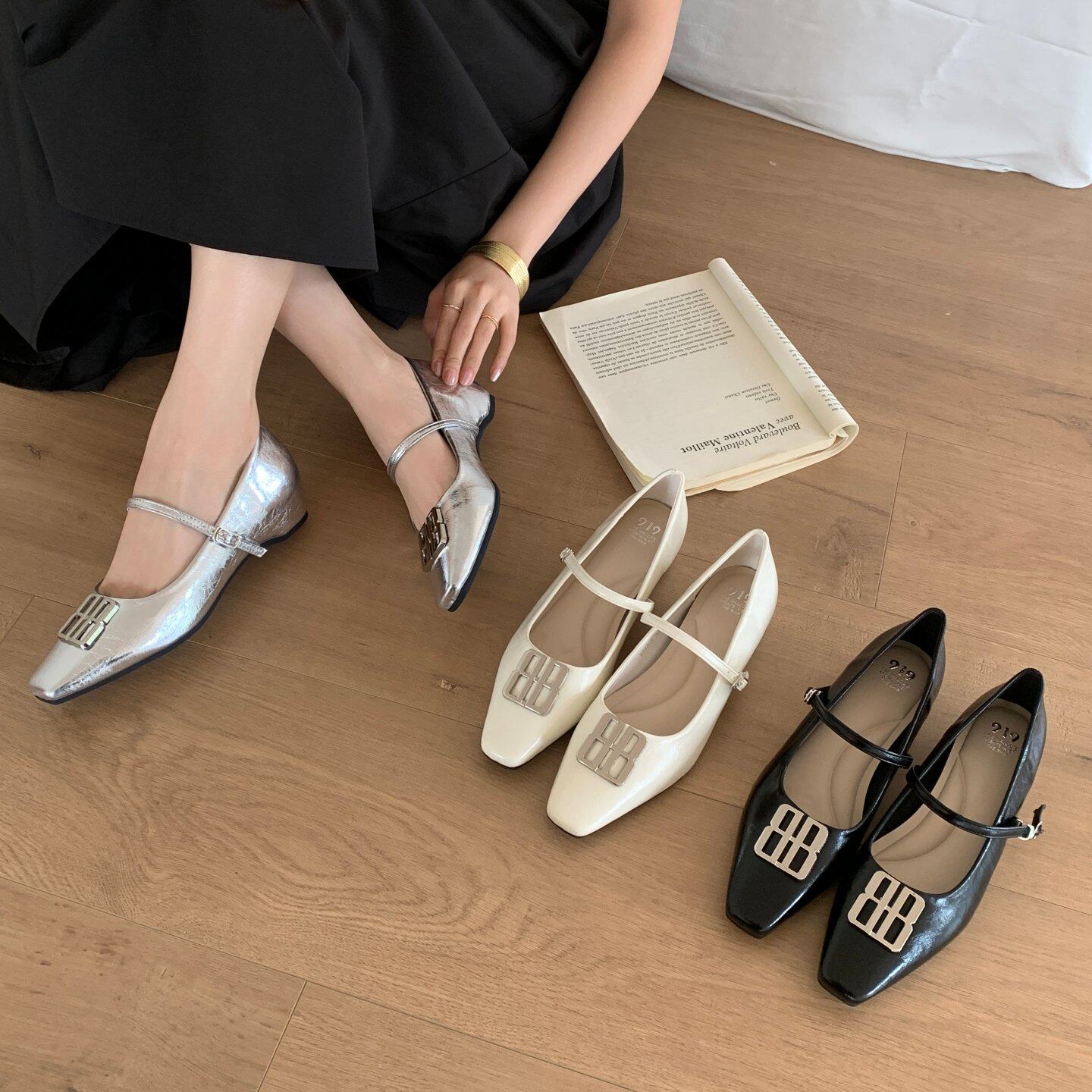 HAN XI 法式优雅风金属方扣玛丽珍鞋女2026年新款内增高浅口单鞋