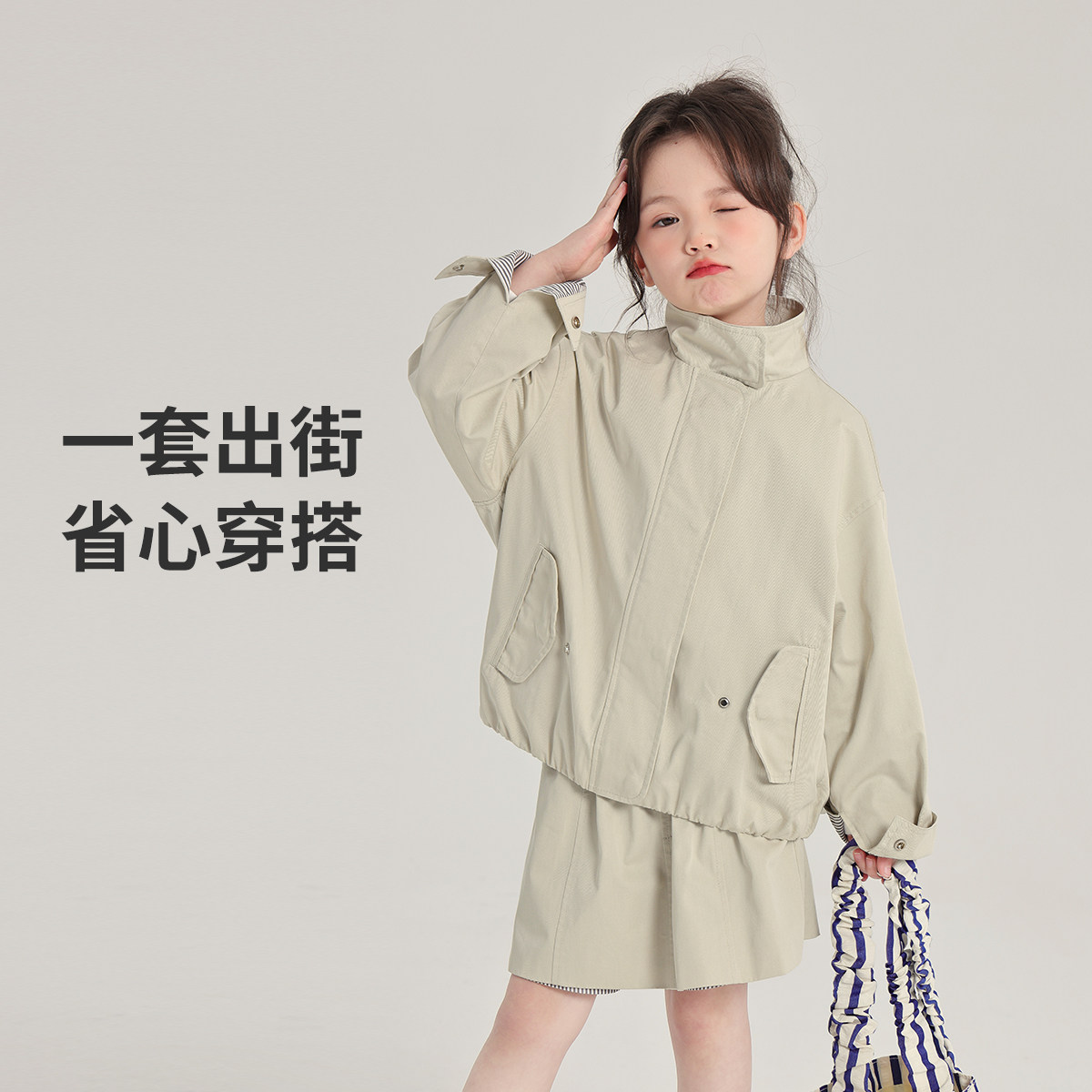 布丁哈鲁童装女童百搭外套2026春秋新款儿童上衣洋气夹克运动套装