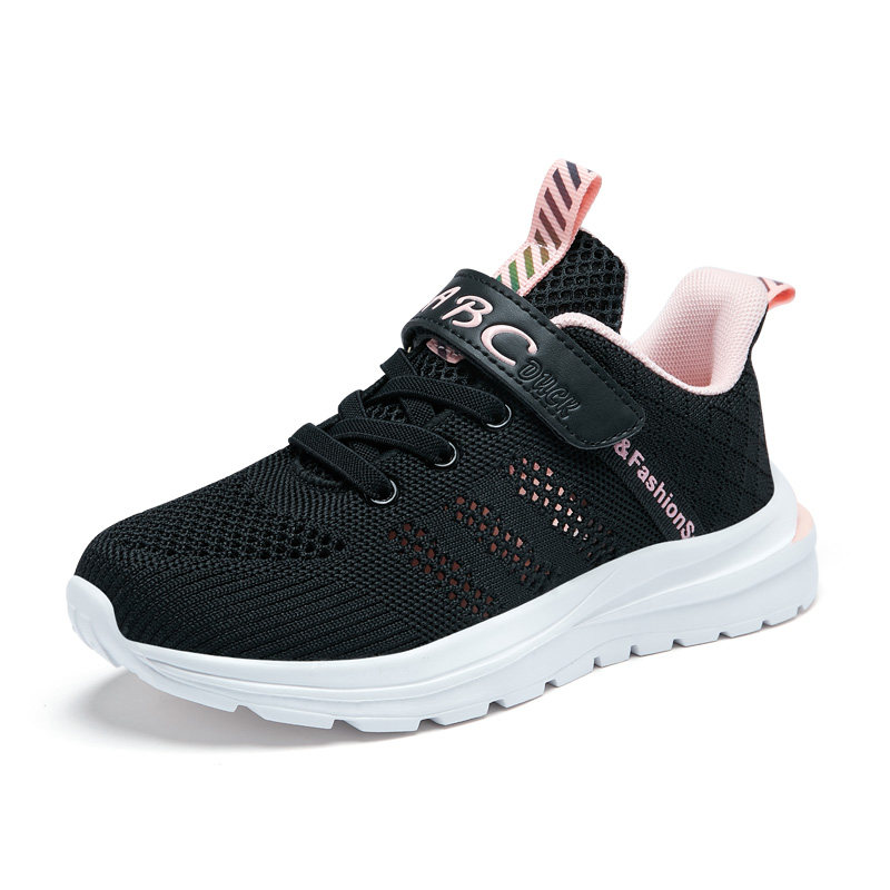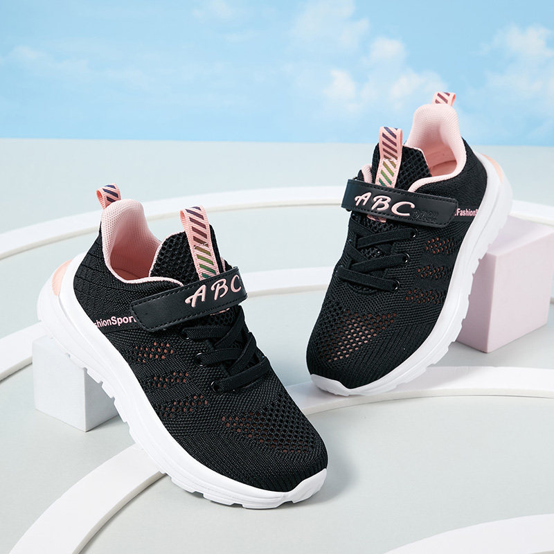 新款ABC女童鞋新款春夏单网面透气黑色秋皮面运动鞋中大童跑步鞋