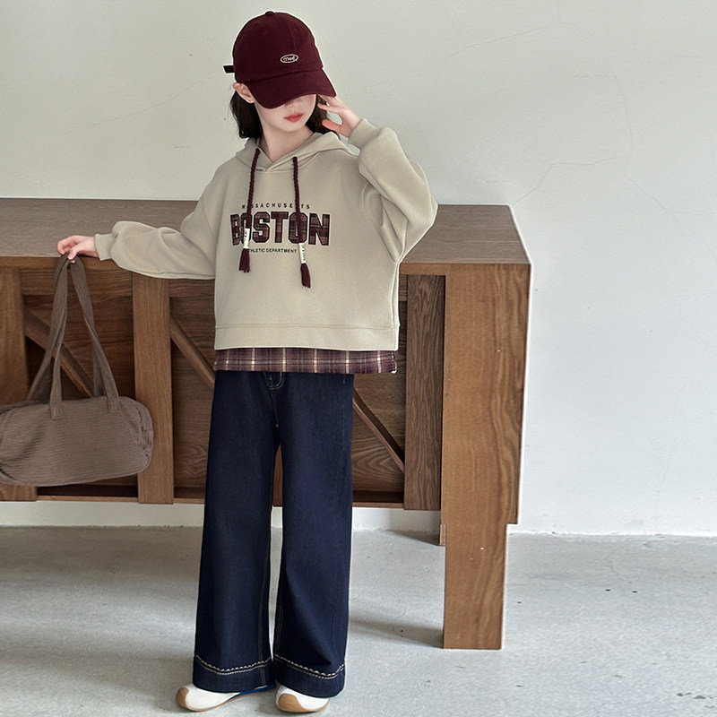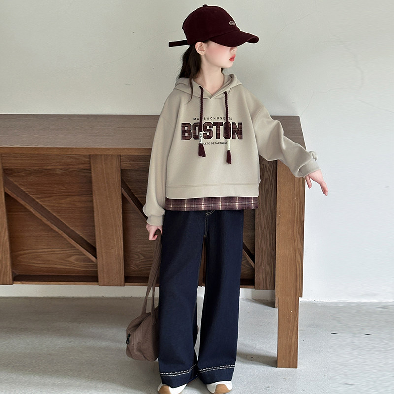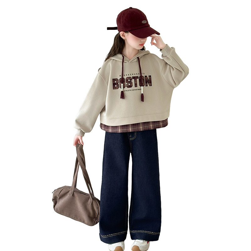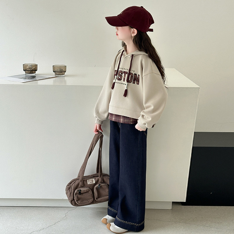 女童春装休闲套装2026新款洋气春连帽卫衣初中生女孩牛仔裤两件套